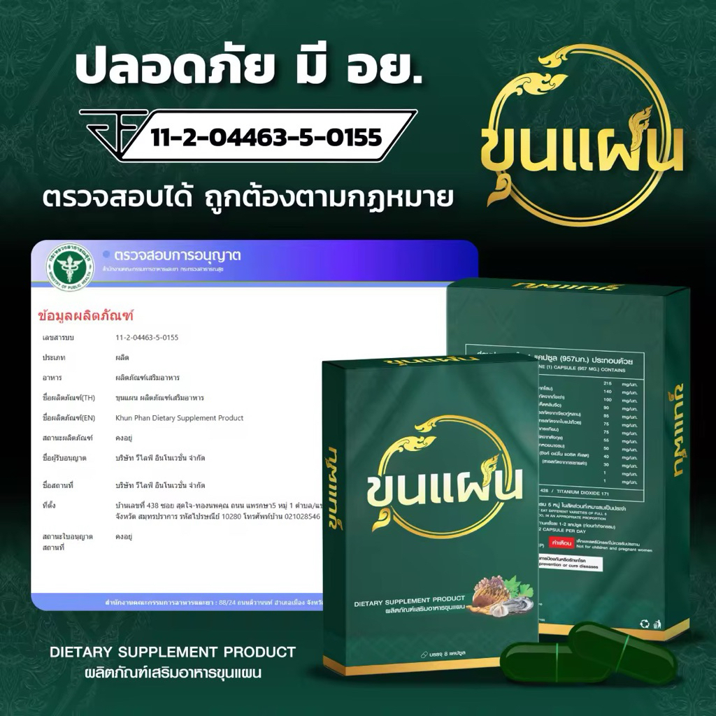 ( โปร 3 แถม 1 ) ขุนแผน ผลิตภัณฑ์เสริมอาหารตราขุนแผน 1 กล่อง/8แคปซูล พร้อมส่ง