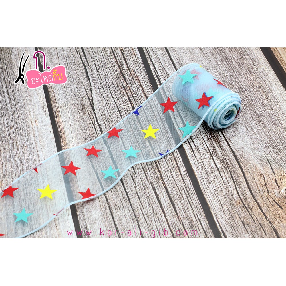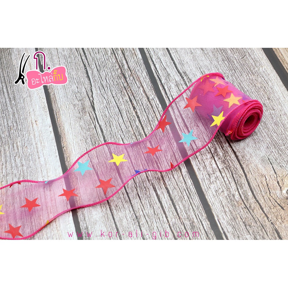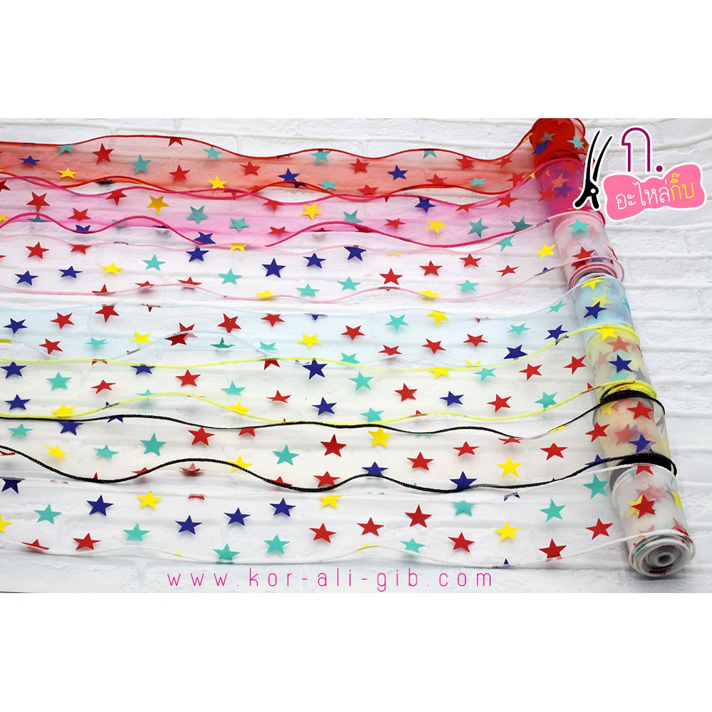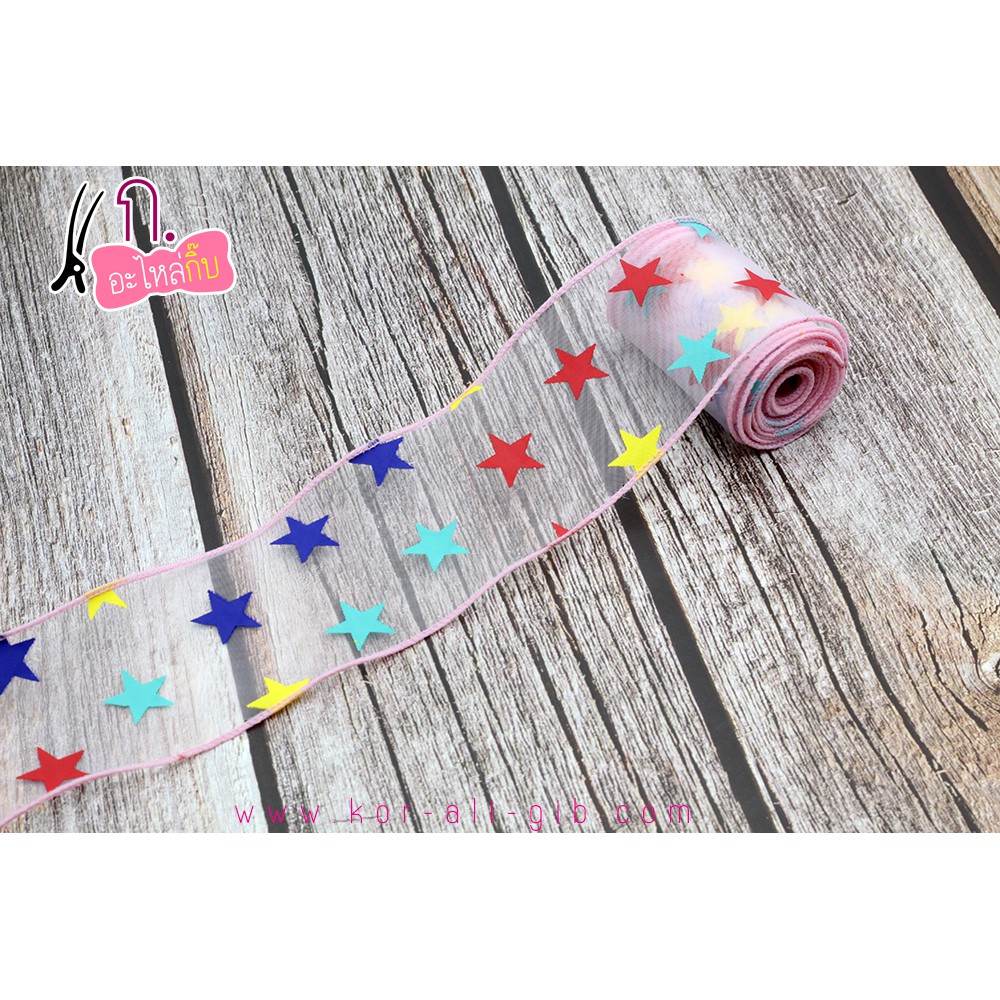 พร้อมส่ง ริบบิ้นผ้าออแกนดี้ ลายดาว เย็บขอบ กว้าง 5.5 ซม. (ขายเป็นหลา)
