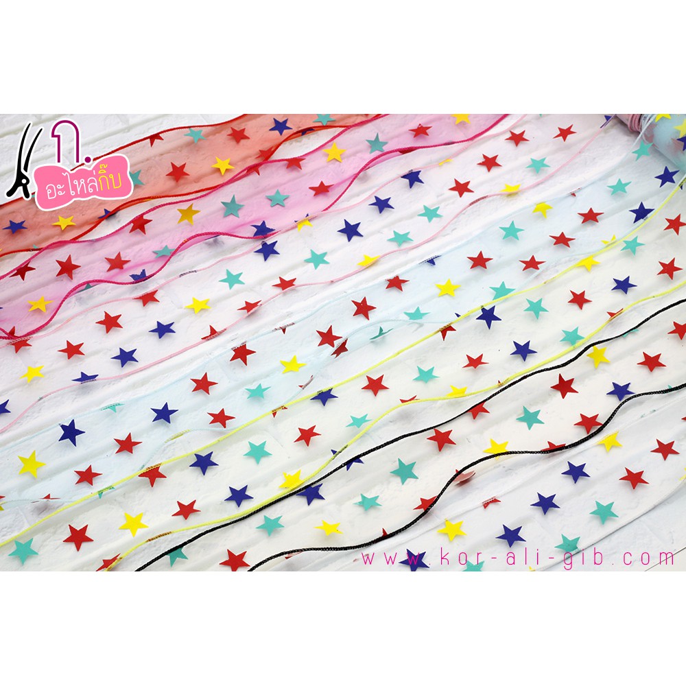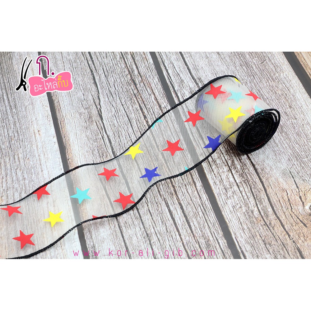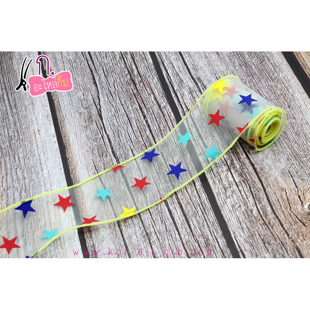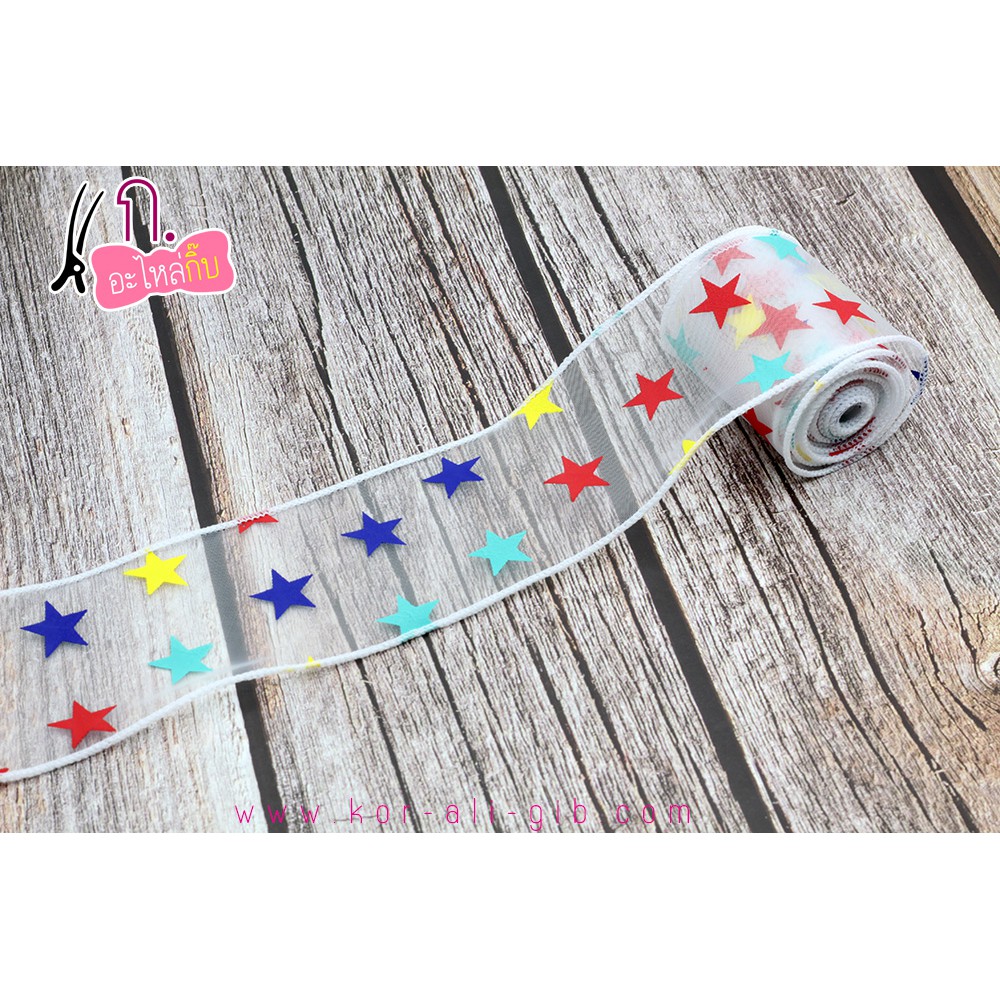 พร้อมส่ง ริบบิ้นผ้าออแกนดี้ ลายดาว เย็บขอบ กว้าง 5.5 ซม. (ขายเป็นหลา)