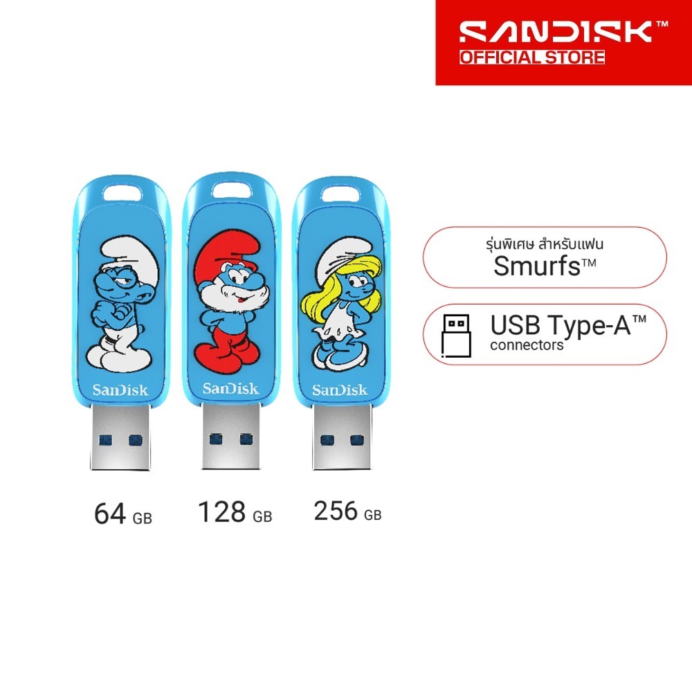 SanDisk Smurfs™ USB 3.2 Gen1 Flash Drive 64GB 128GB 256GB (SDCZIS-xxxG-G46)