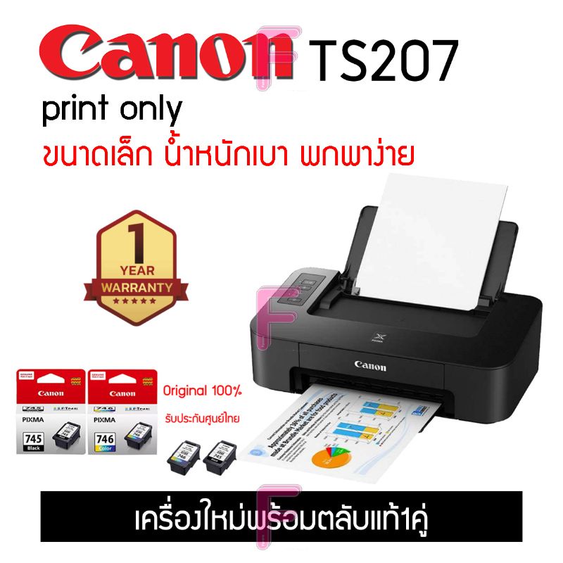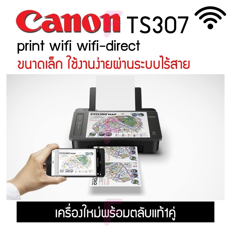 CANON TS207 , TS307wi-fi เครื่องปริ้นเตอร์สีและขาวดำ พร้อมหมึกแท้ 1 ชุด