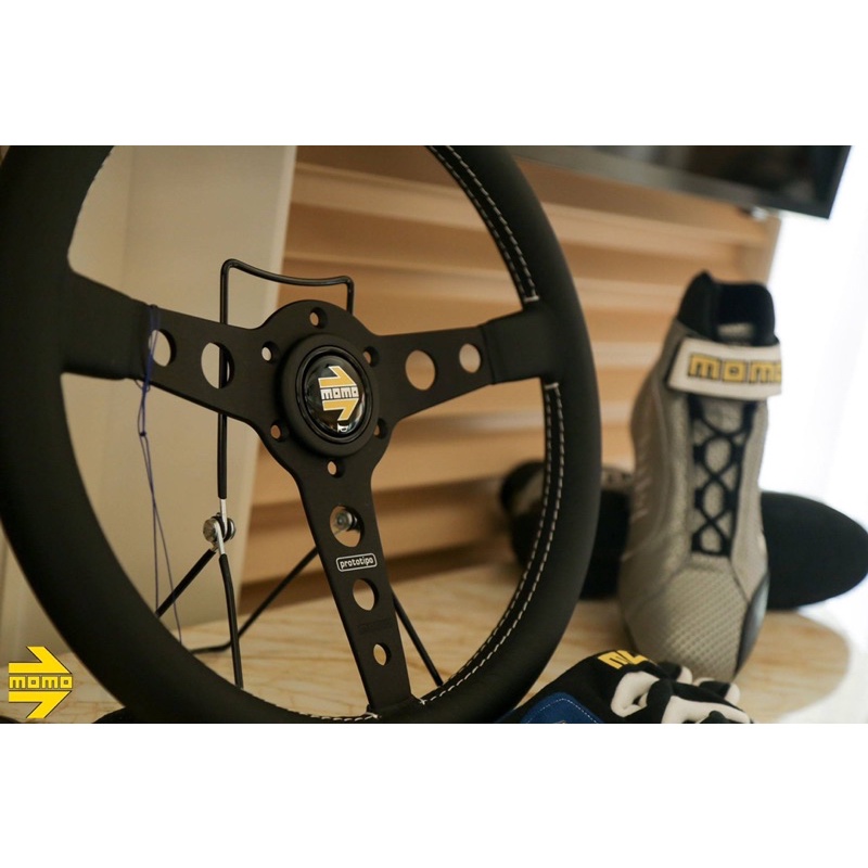 พวงมาลัย MOMO PROTOTIPO BLACK steering wheel หนังเรียบ พร้อมชุดแตรตรงรุ่น อิตาลี่ โมโม่ แท้ ขนาด 350มม.