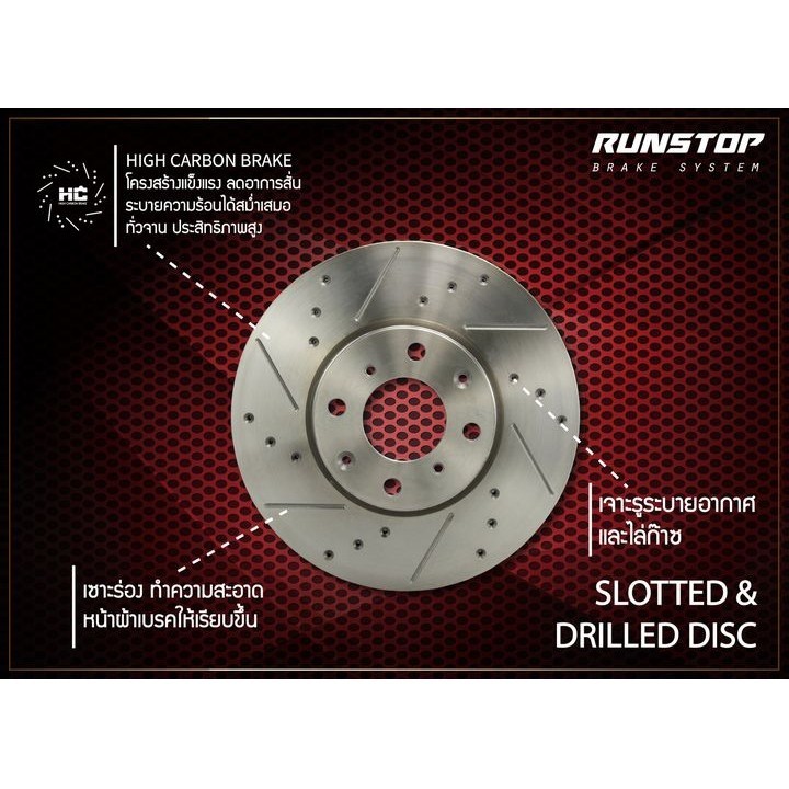 runstop จานเบรคหน้า ขนาดเดิม เจาะรูเซาะร่อง ลายก้างปลา ตรงรุ่น HONDA Jazz Ge Gk City City Turbo Civic Eg Ek Es พร้อมส่ง
