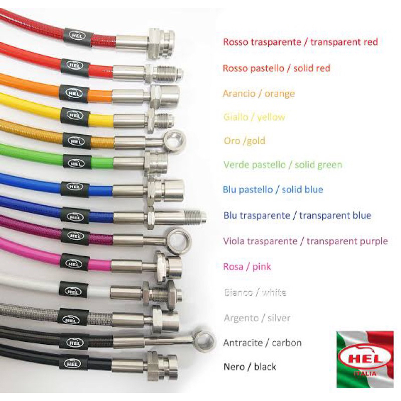 สายเบรค สายถัก HEL แท้ นำเข้าจากประเทศอังกฤษ มี 5 สีให้เลือก สายเบรก สายเบรค เบรคนุ่ม แน่นหยุดรถได้ดีขึ้น ใช้ในสนามแข่ง