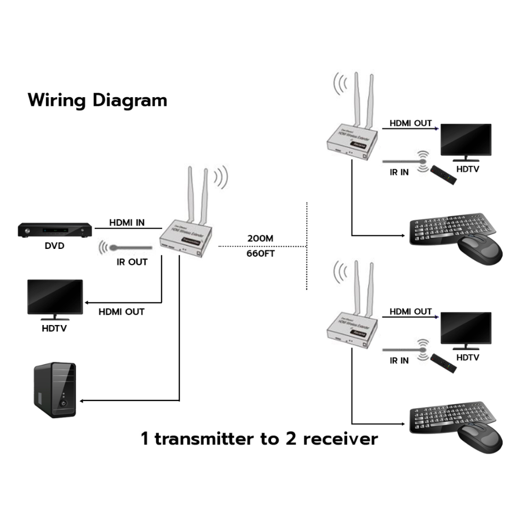 HDMI KVM Wireless Extender 1 ออก 2 200m (TX/RX)
