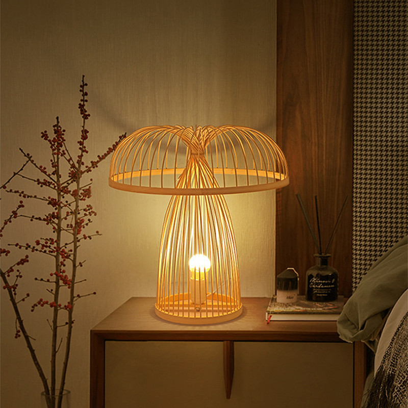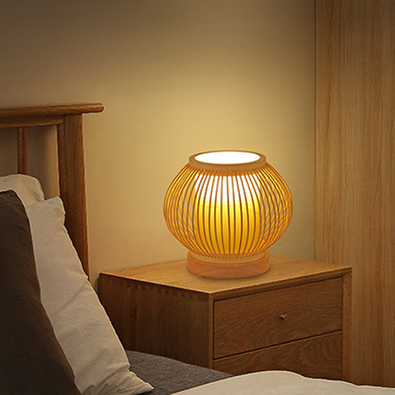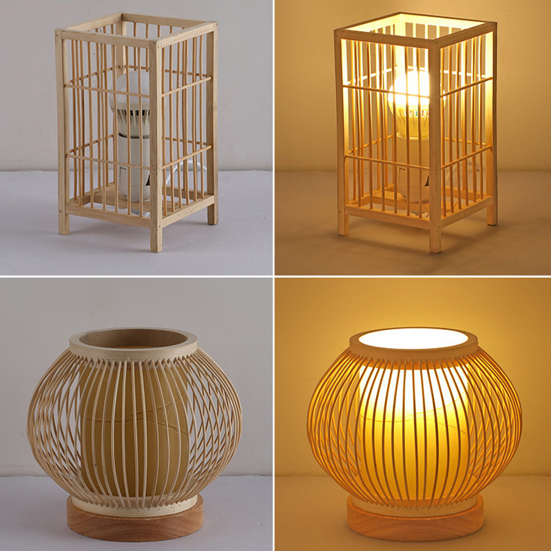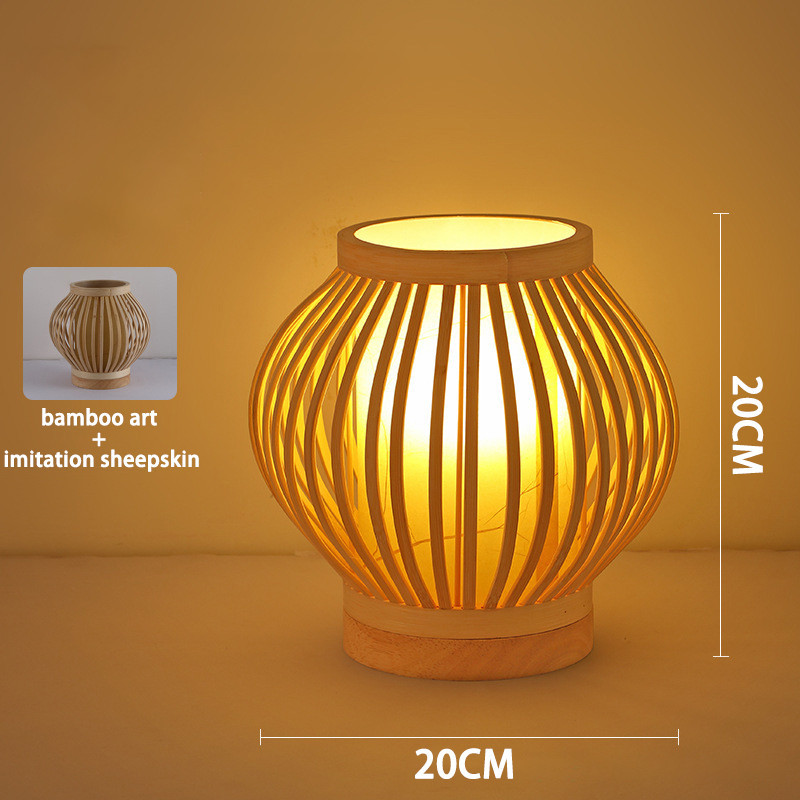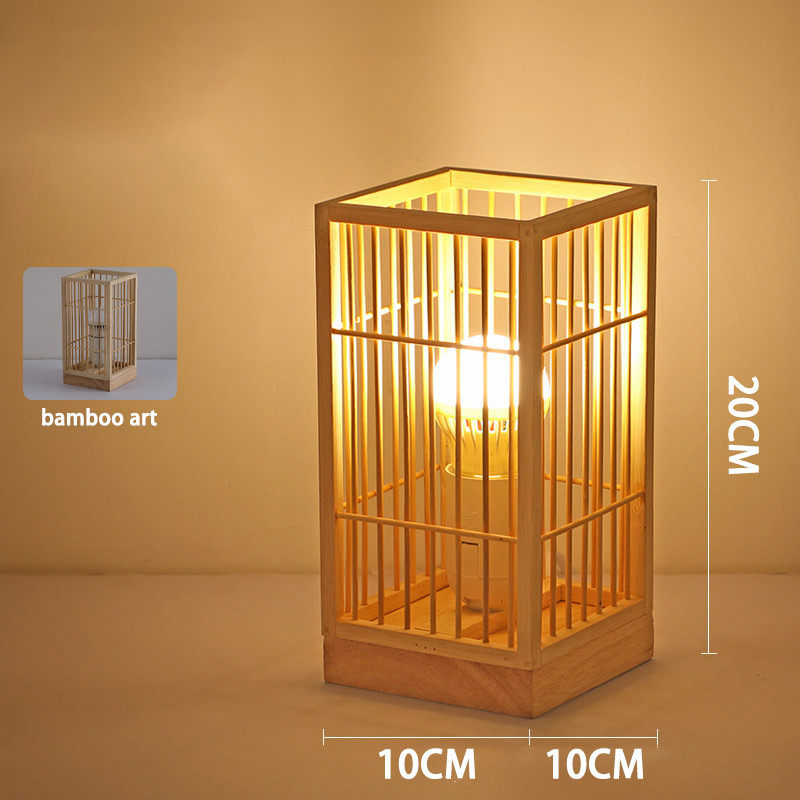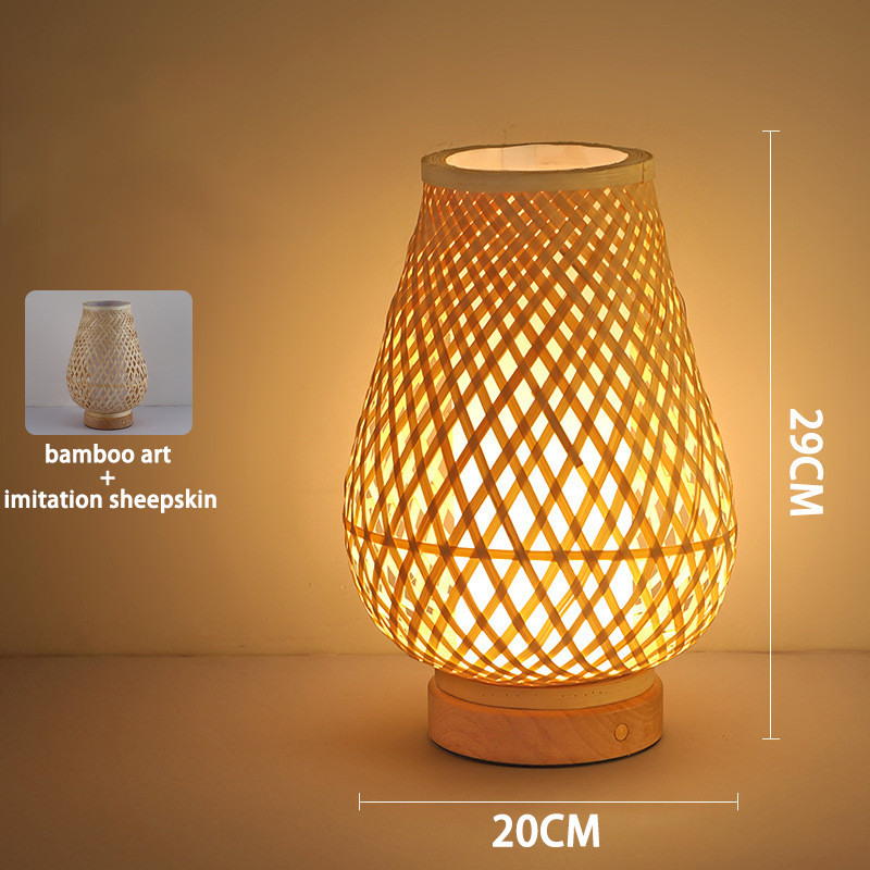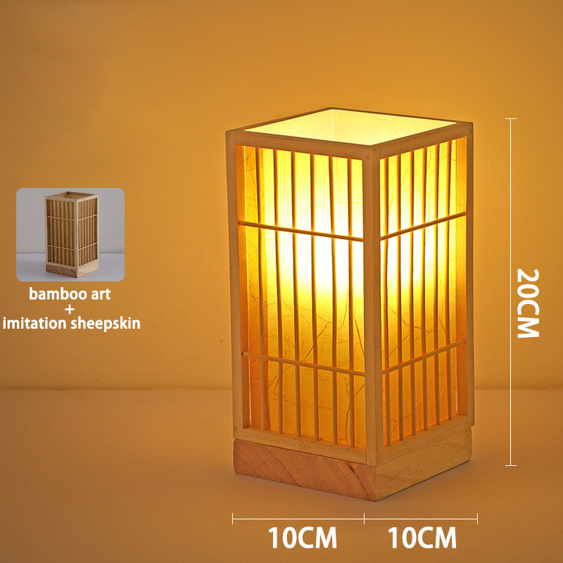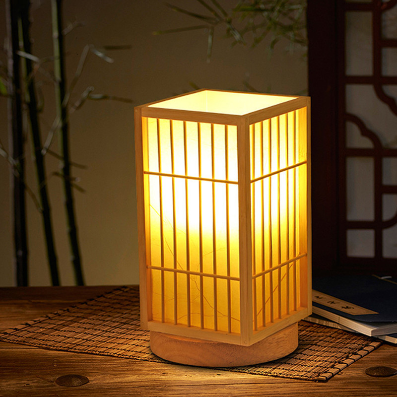 โคมไฟตั้งโต๊ะไม้ไผ่ญี่ปุ่นแบบชาร์จไฟย้อนยุคเซนห้องนั่งเล่นศึกษาโคมไฟห้องนอนโคมไฟตั้งโต๊ะบรรยากาศสไตล์จีน