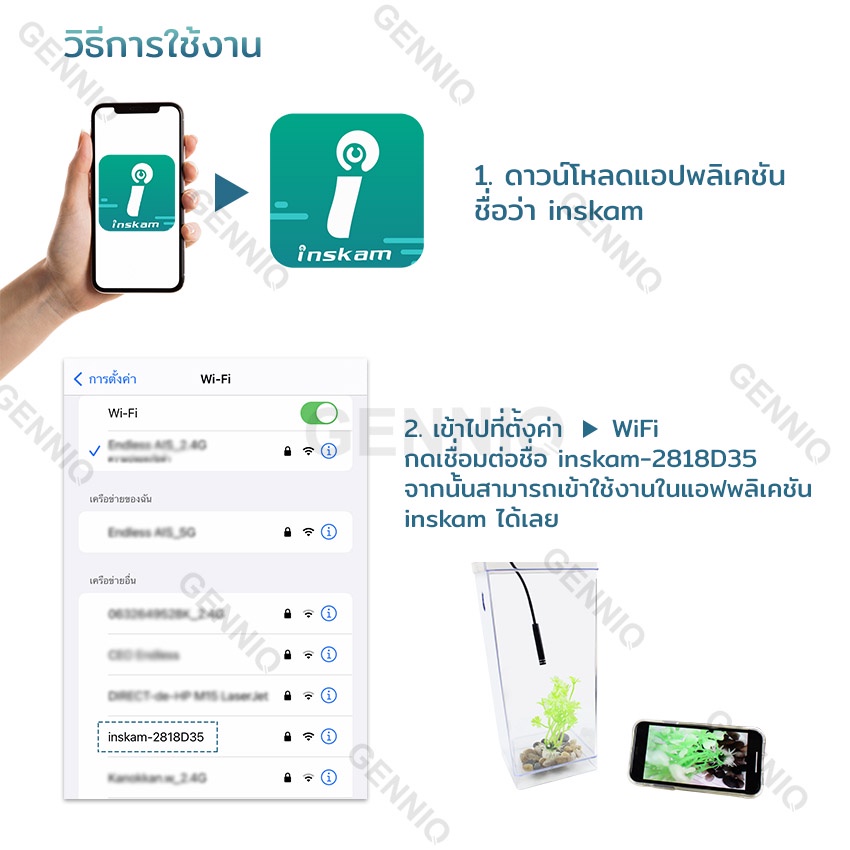 กล้องเอนโดสโคป กล้องงู แบบไร้สาย ต่อเข้ากับโทรศัพท์มือถือ Endoscope Camera with Wifi Box