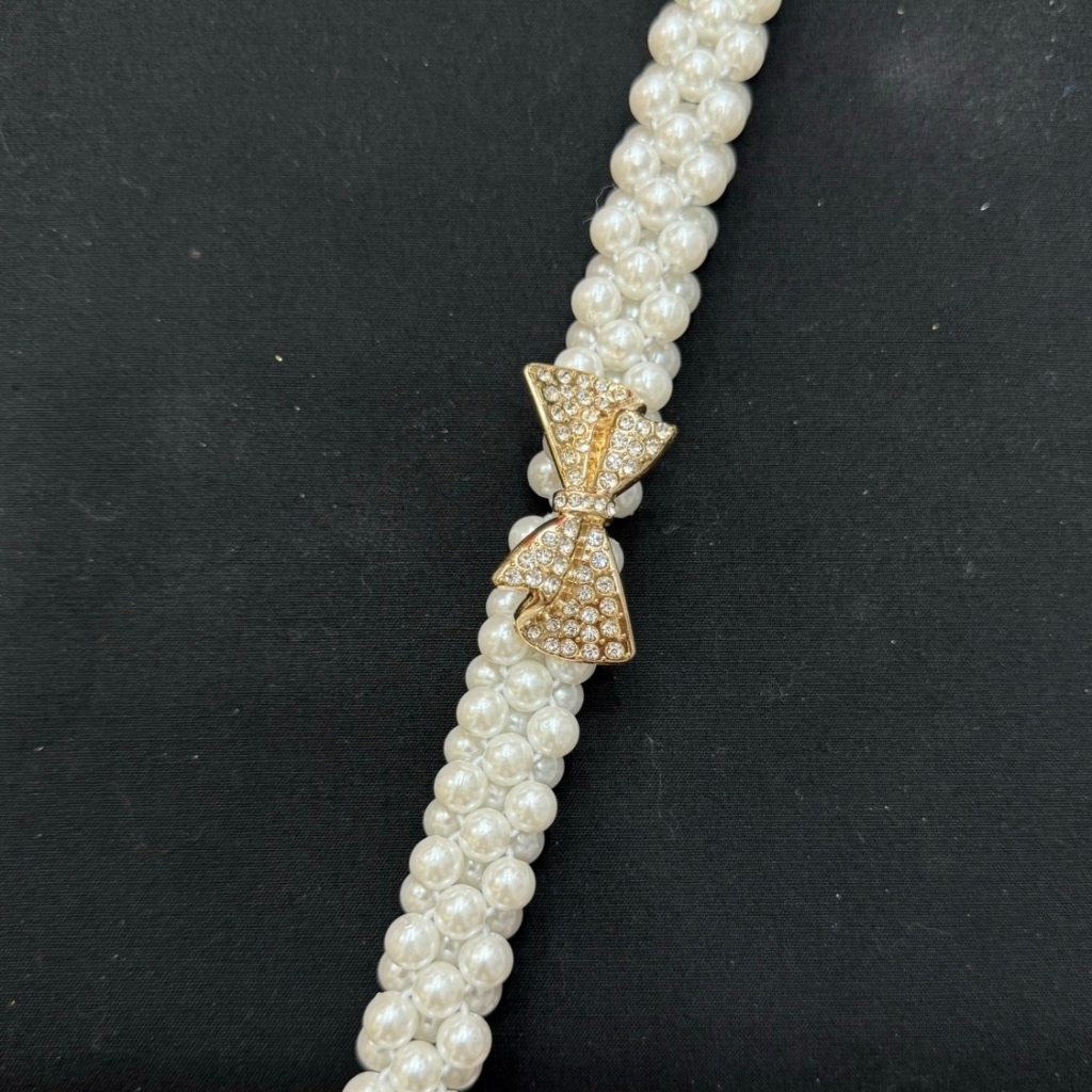 Fashion Jewele แฟชั่น เข็มขัดไข่มุก เข็มขัดดอกไม้ทอโซ่มุก ยืดหยุ่น สำหรับผู้หญิง
