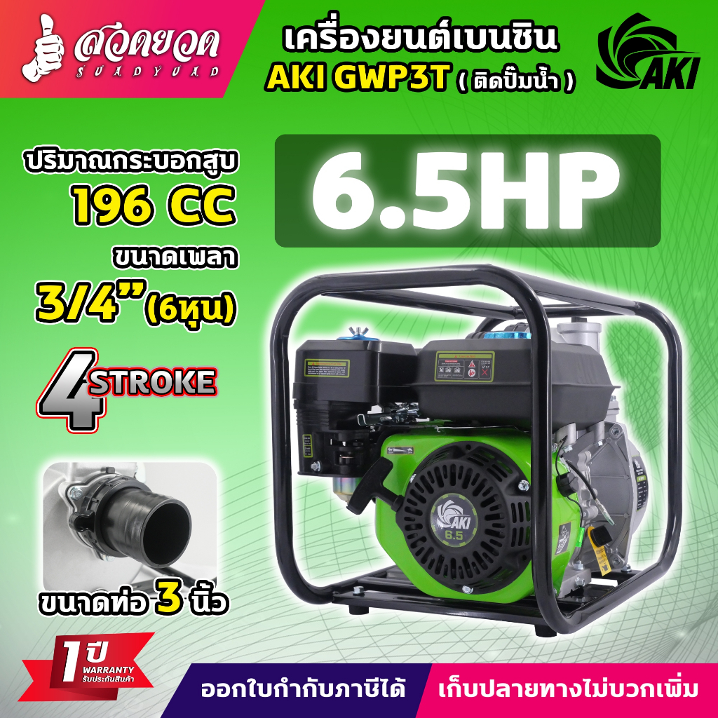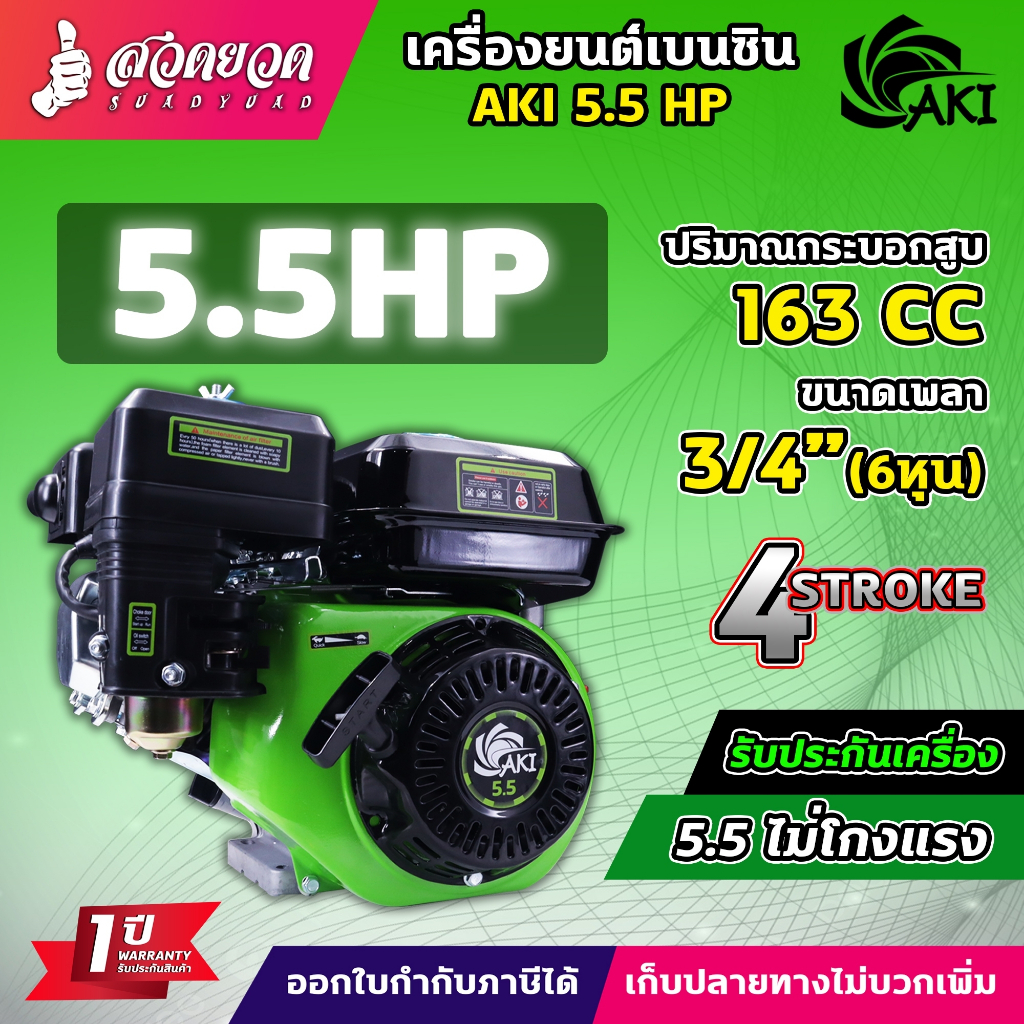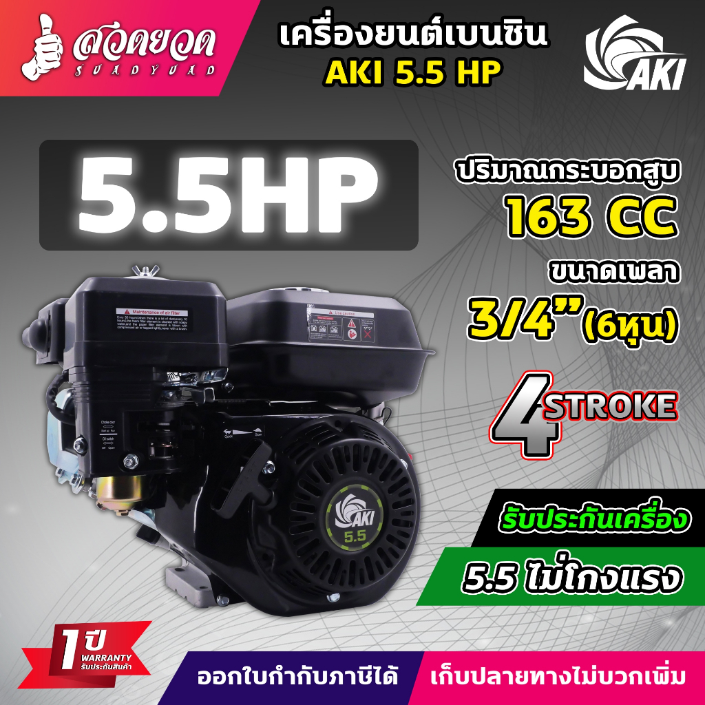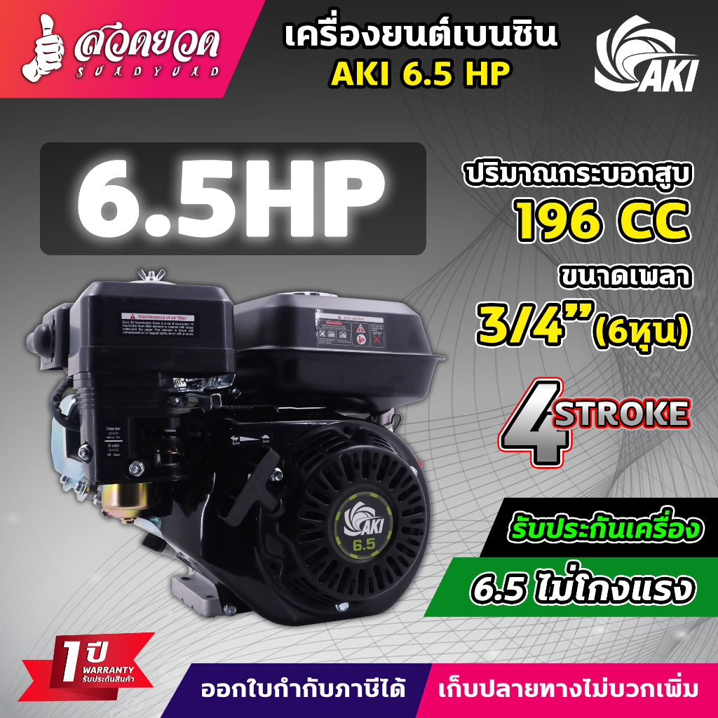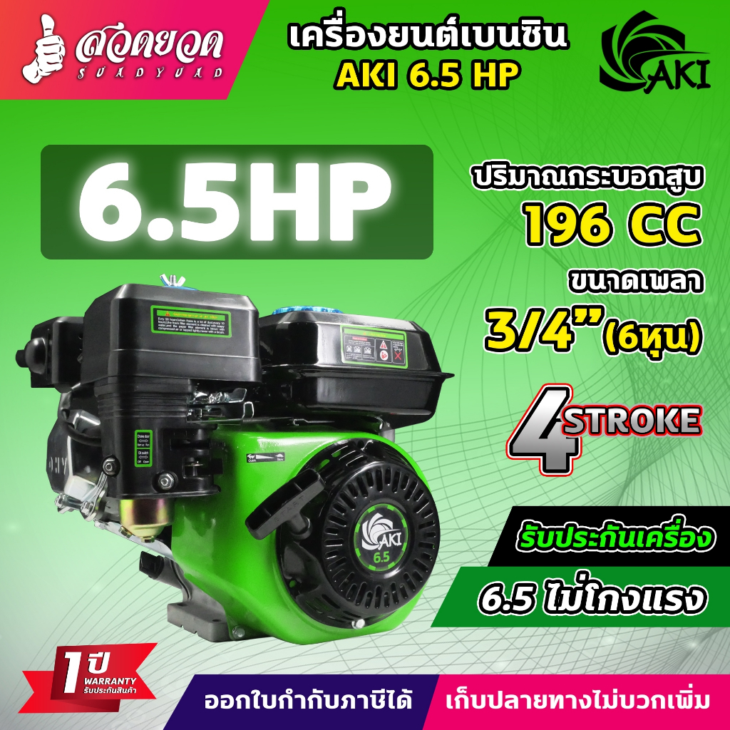 เครื่องยนต์ AKI เครื่องยนต์เบนซิน 5.5 6.5 13 HP 4 จังหวะ สตาร์ทง่าย แข็งแรง ประหยัดน้ำมัน วัสดุหนาอย่างดี รับประกัน 1 ปี