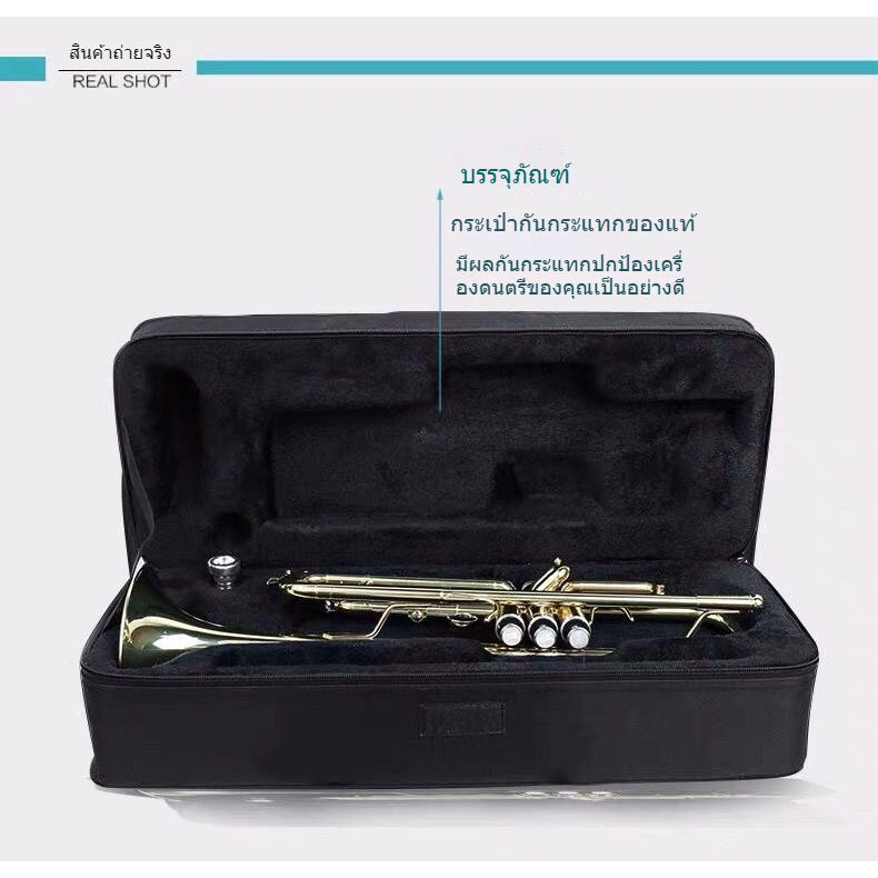 🦈ammoon ทรัมเป็ต Bb🦈 ทองเหลืองชุบทอง เพ้นท์สีทอง ทนทาน พร้อมสายคล้องปากเป่า มีความสวยหรู และทนทาน