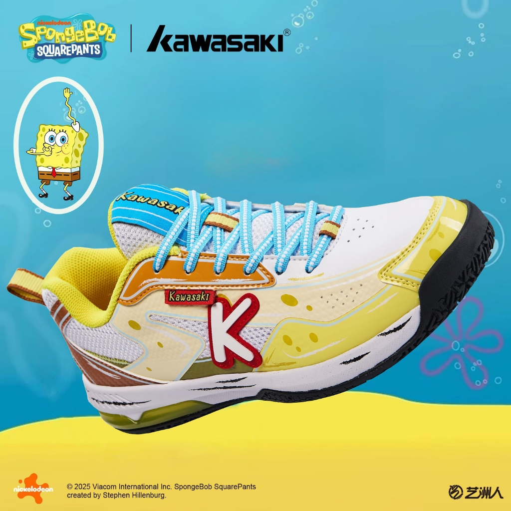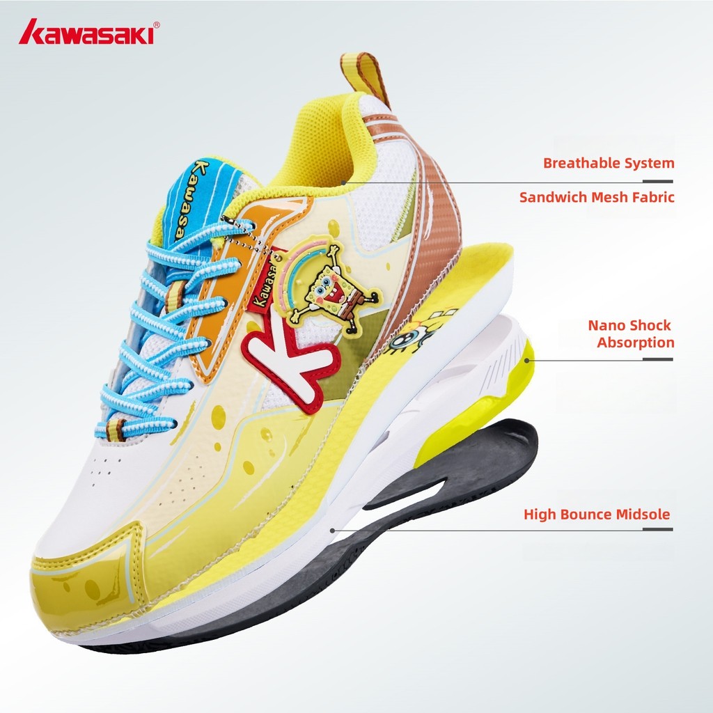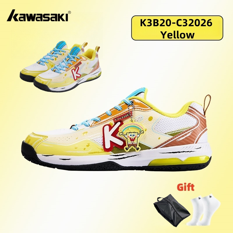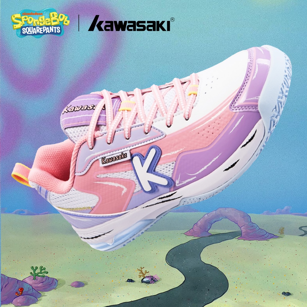 KAWASAKI คาวาซากิ สพันจ์บ็อบ รองเท้าแบดมินตันผู้หญิงและผู้ชายมืออาชีพการฝึกอบรมป้องกันการลื่นทนทานดูดซับแรงกระแทกรองเท้ากีฬาย้อนยุค K3B20-C32026