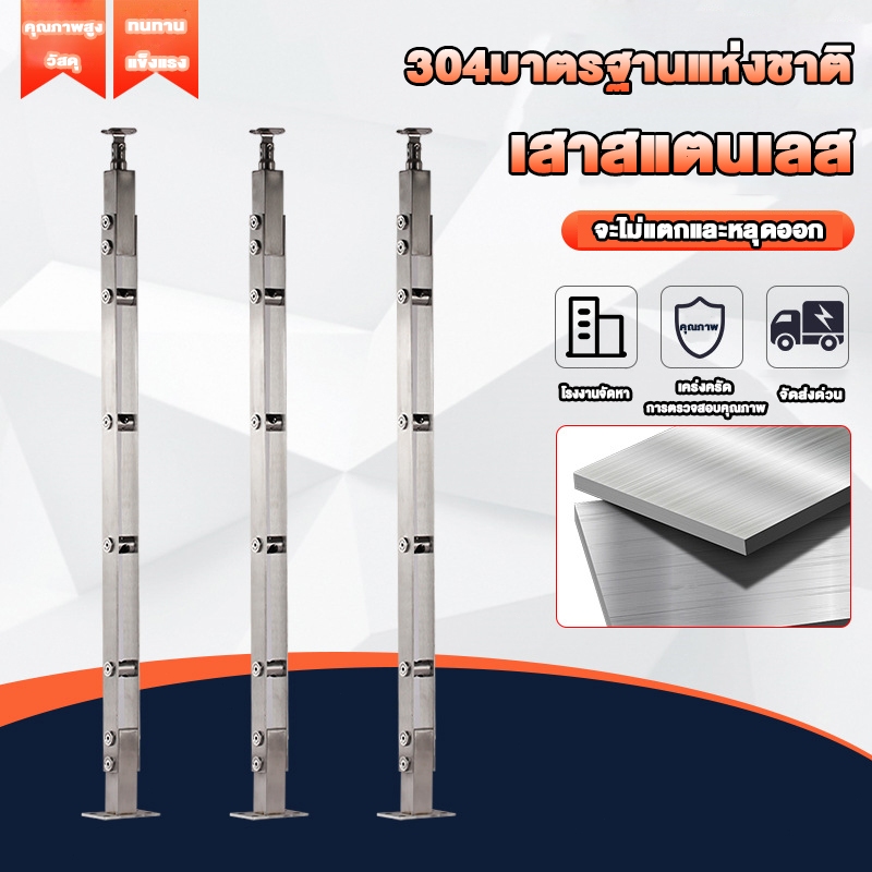 เสาสแตนเลส เสาราวบันได เสาจับกระจก งานไทย สแตนเลสแท้ เกรด304 แถมฝาครอบฟรี ใช้กับกระจก 8-12มิล (เจาะกระจก)