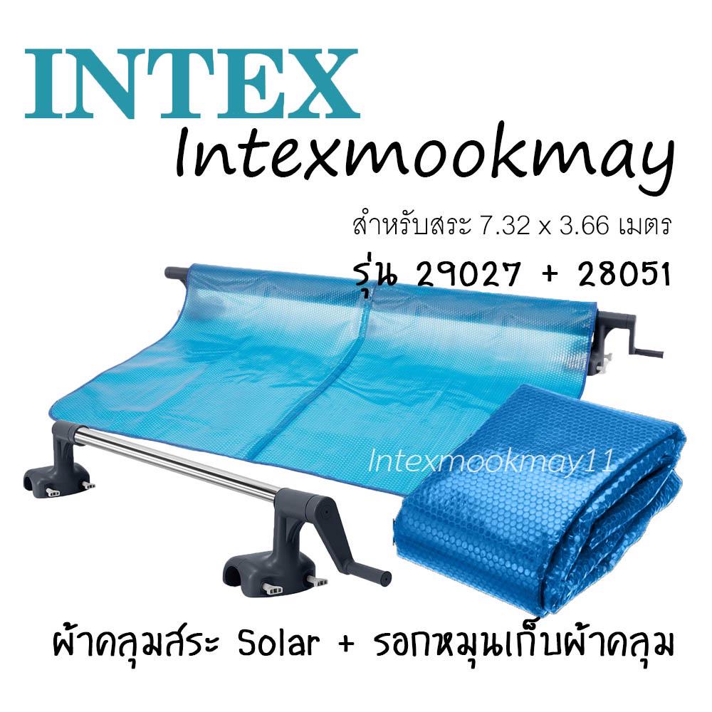 Intex 29027 28051 Solar Cover 24 ฟุต ผ้าคลุมสระกันแดดพร้อมโรลเลอร์ม้วนเก็บสระ 24 ฟุต