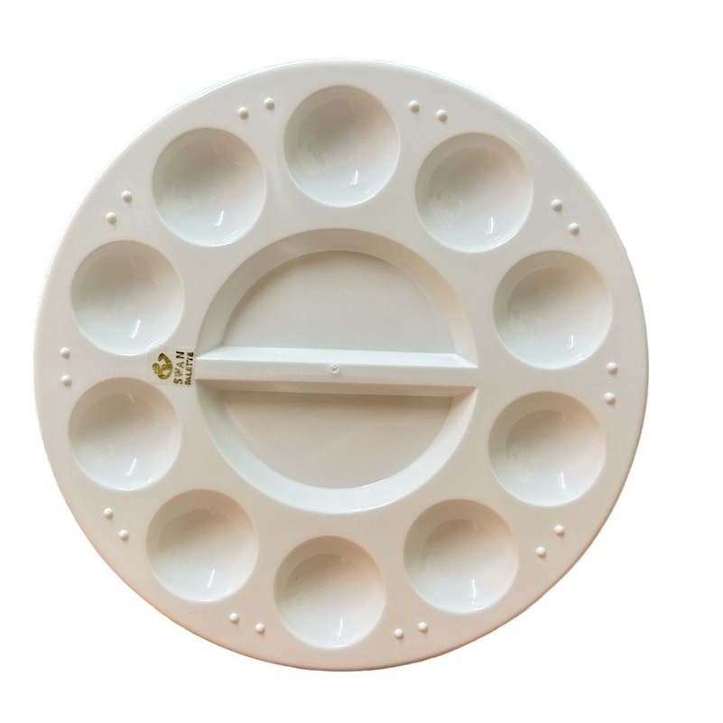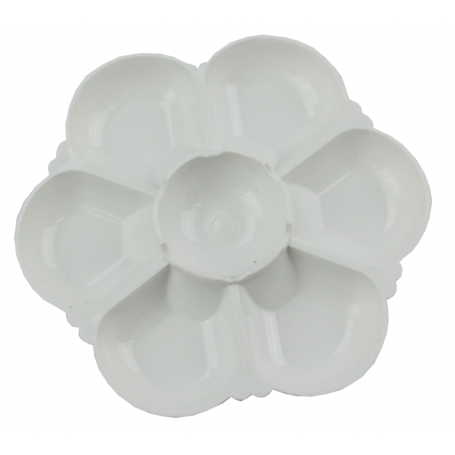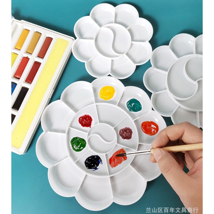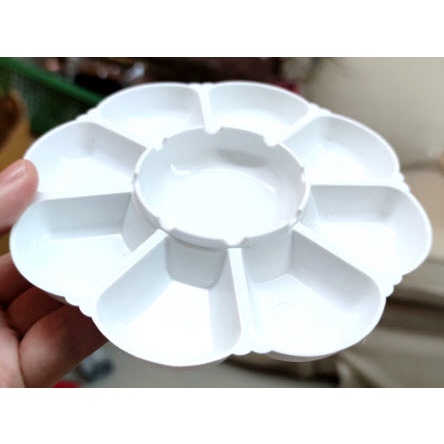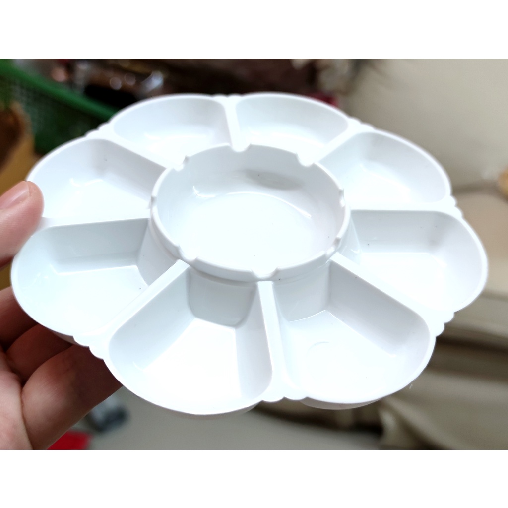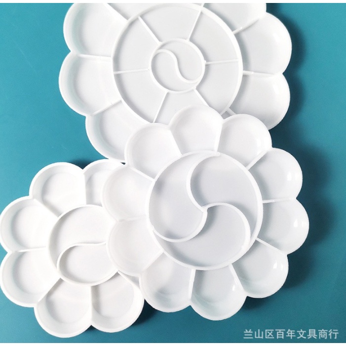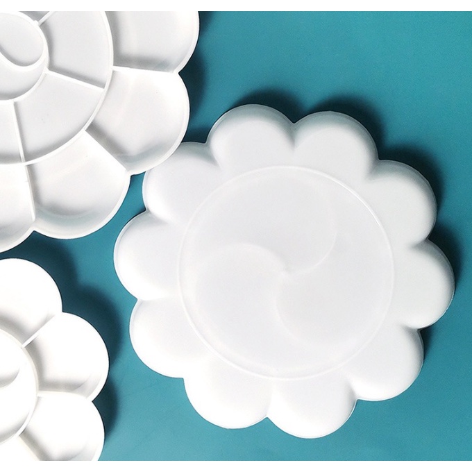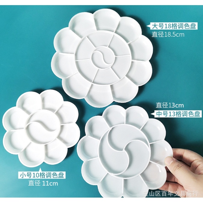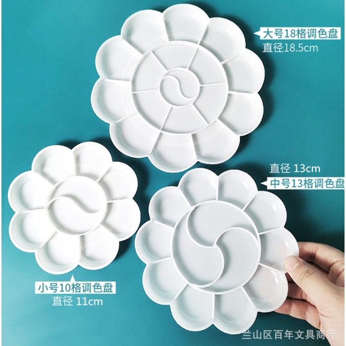 [รุ่นสีขาวทึบ] จานสี พลาสติก รูปดอกไม้ 7-18หลุม ถาดหลุม จานผสมสี ระบายสี หลายขนาด
