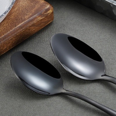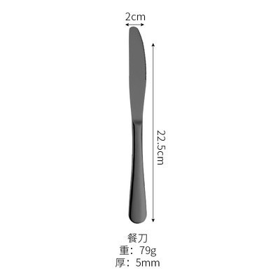 ชุดช้อนส้อมสีดํา ช้อนซุปสแตนเลสมีดสเต็กส้อมผลไม้บนโต๊ะอาหารชุดช้อนชาเค้กพลั่วโลหะอาหารเย็น