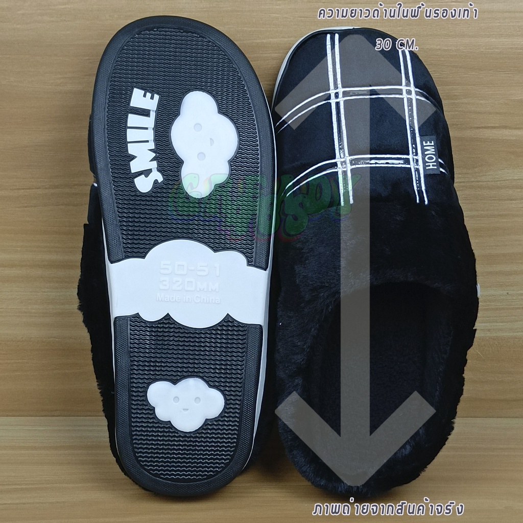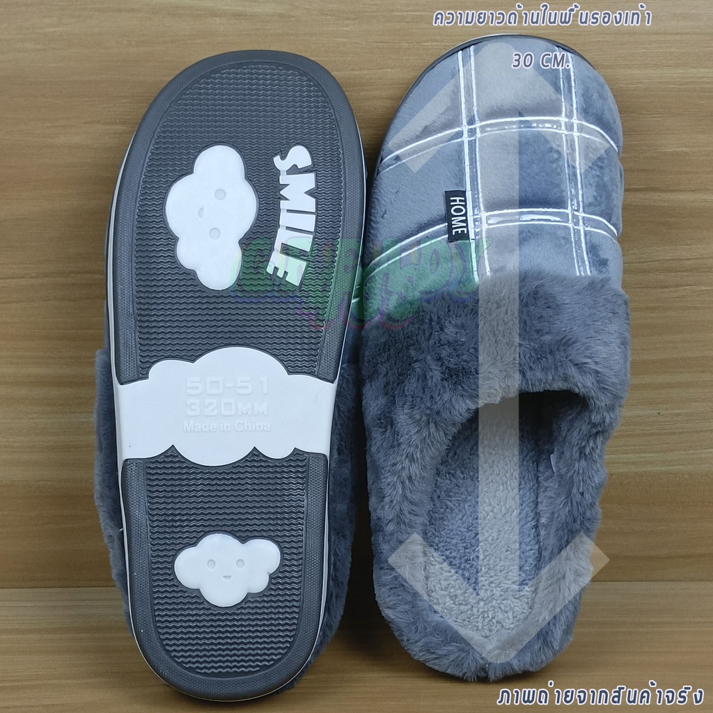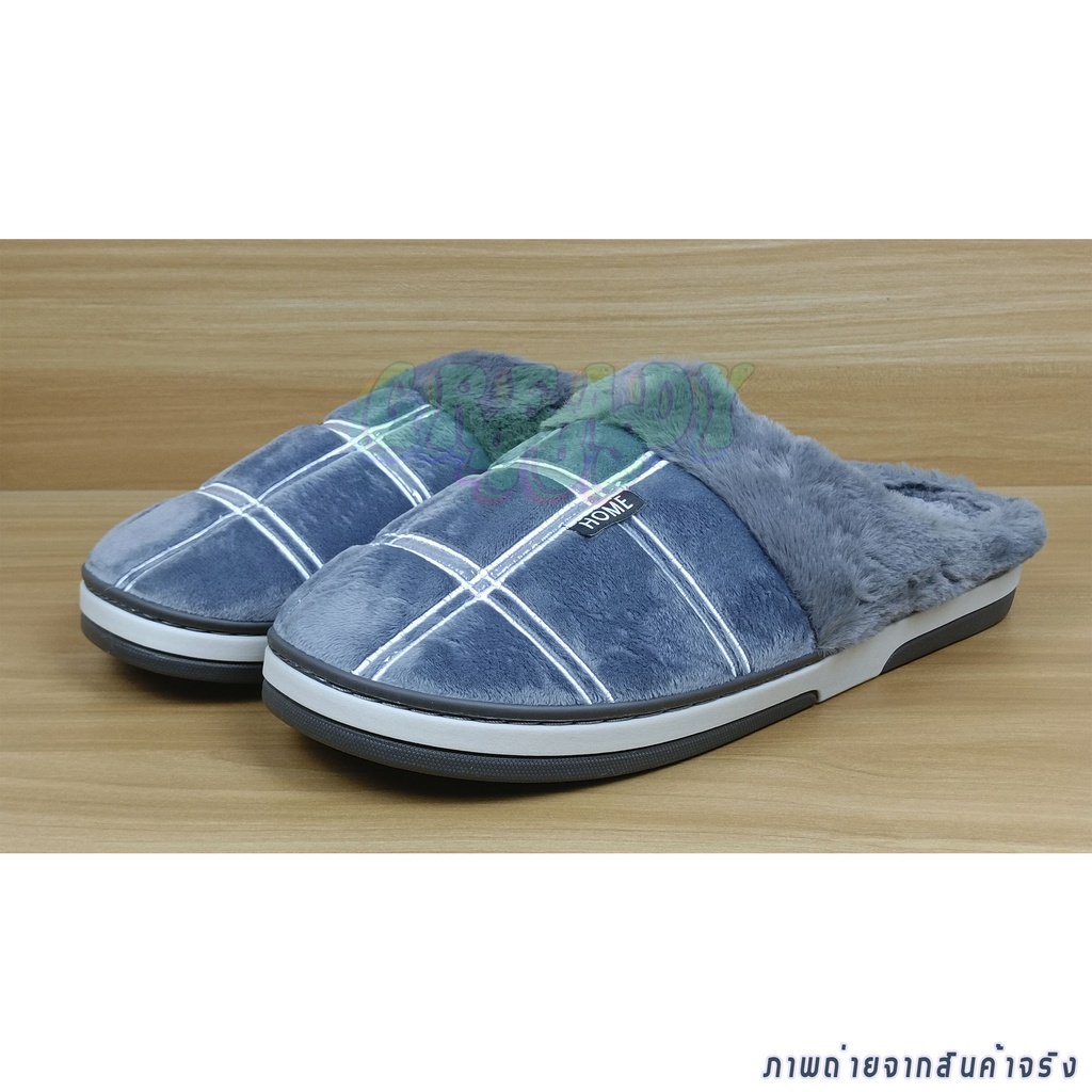 รองเท้าสลิปเปอร์ รองเท้าใส่ในบ้านไซส์ใหญ่ รุ่น HOME หัวผ้า พื้นยาง TPR เหมาะสำหรับคนใส่เบอร์ EU44-46