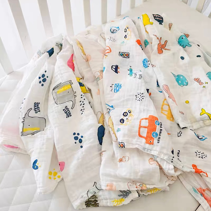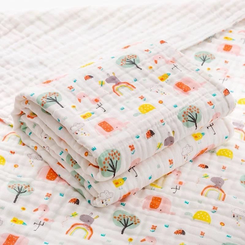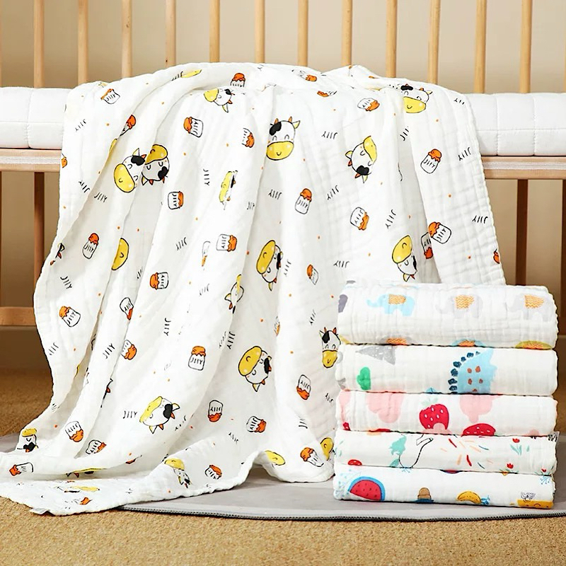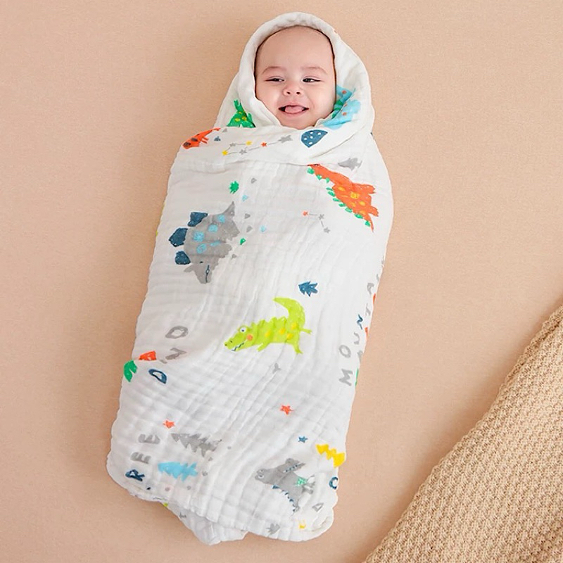 ❗️SALE ❗️ผ้าห่อตัว ผ้าห่มเด็ก ผ้าปูรองนอน มัสลินคอตอนทอ6ชั้น เนื้อหนานุ่ม ขนาด110*110cm
