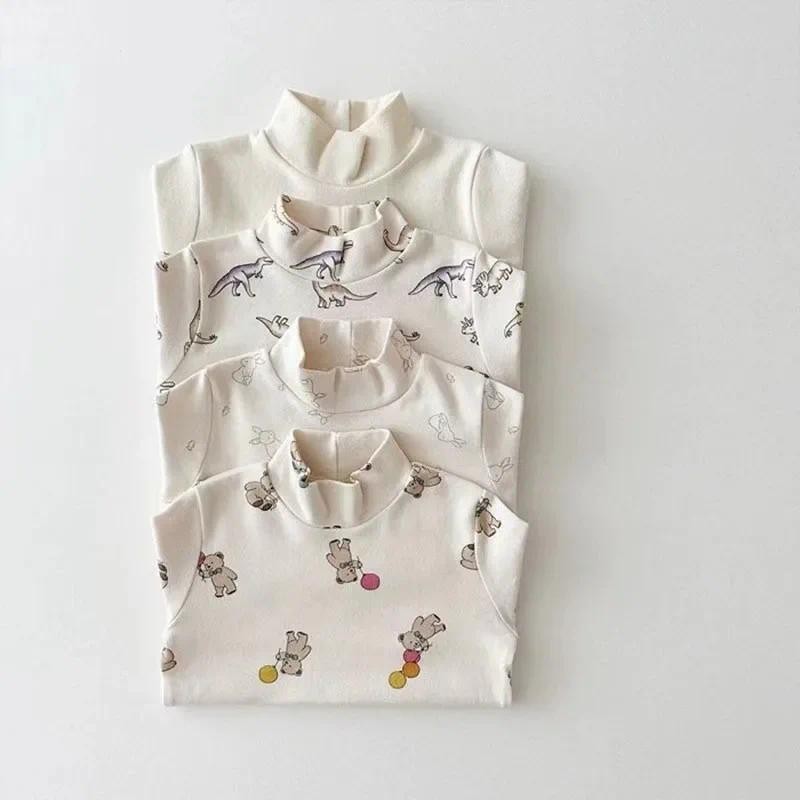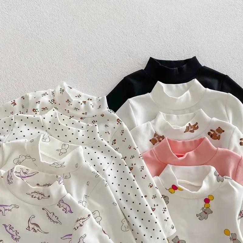 2023ฤดูใบไม้ร่วงใหม่เด็กผ้าฝ้าย จุดต่ําสุด เสื้อทารกแขนยาว ที เสื้อน่ารักหมีพิมพ์ท็อปส์สําหรับหนุ่มๆสาวๆทีเด็กเสื้อผ้า