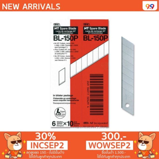 ใบมีดคัตเตอร์ใหญ่ ยี่ห้อNT BL-150P(60ใบ/กล่อง)
