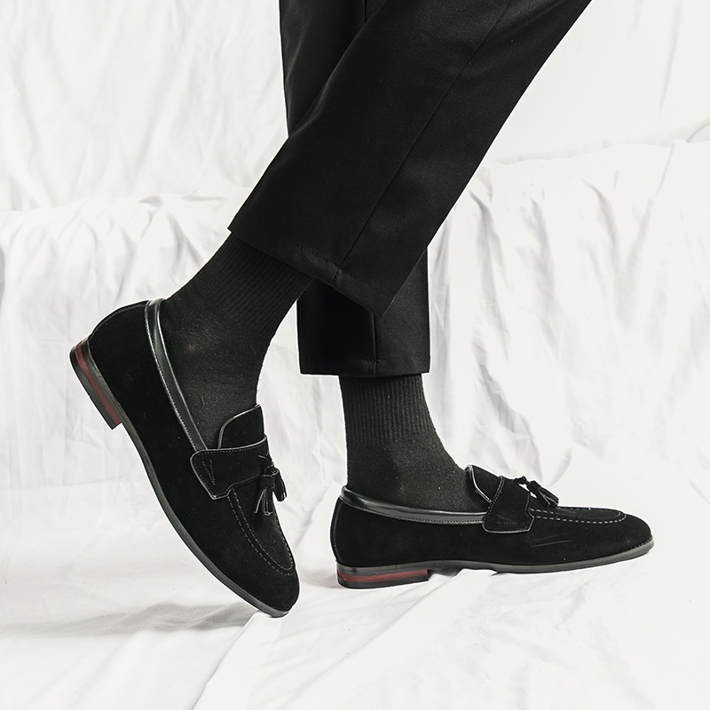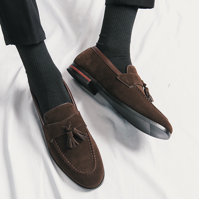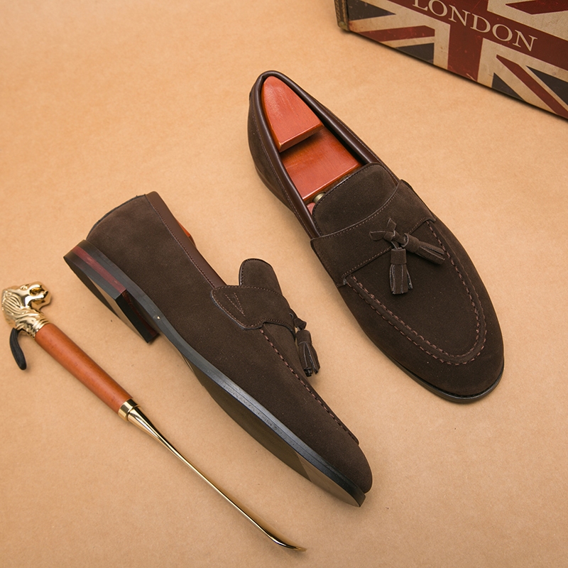 รองเท้าโลฟเฟอร์ หนังวัวแท้ ประดับพู่ ระบายอากาศ แฮนด์เมด สไตล์นักธุรกิจ สําหรับผู้ชาย