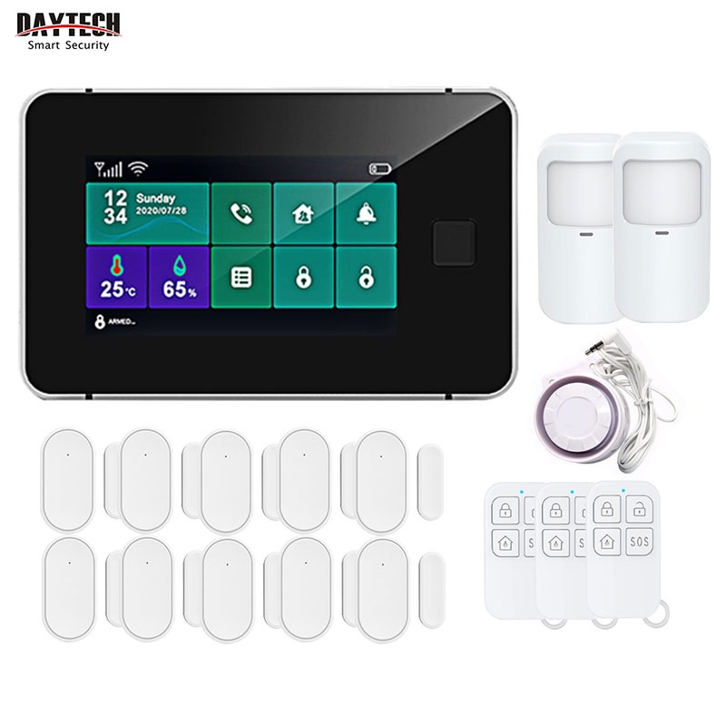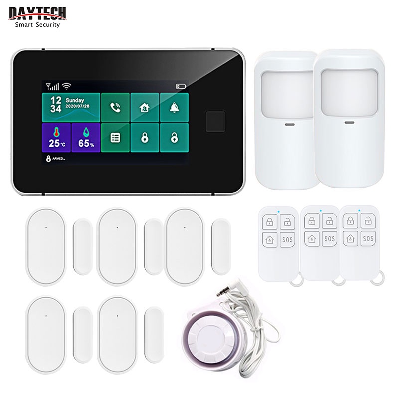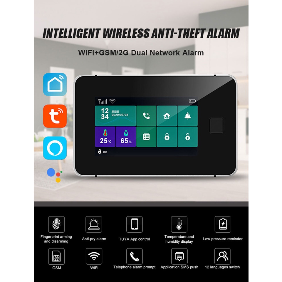 Daytech Tuya Smart Wifi GSM ระบบเตือนภัย กันขโมย อุณหภูมิ ความชื้น แบบไร้สาย มีสาย ทัชแพด ลายนิ้วมือ Alexa Google Home GSM05