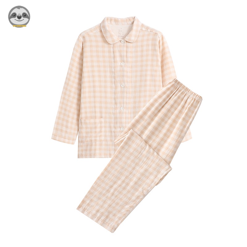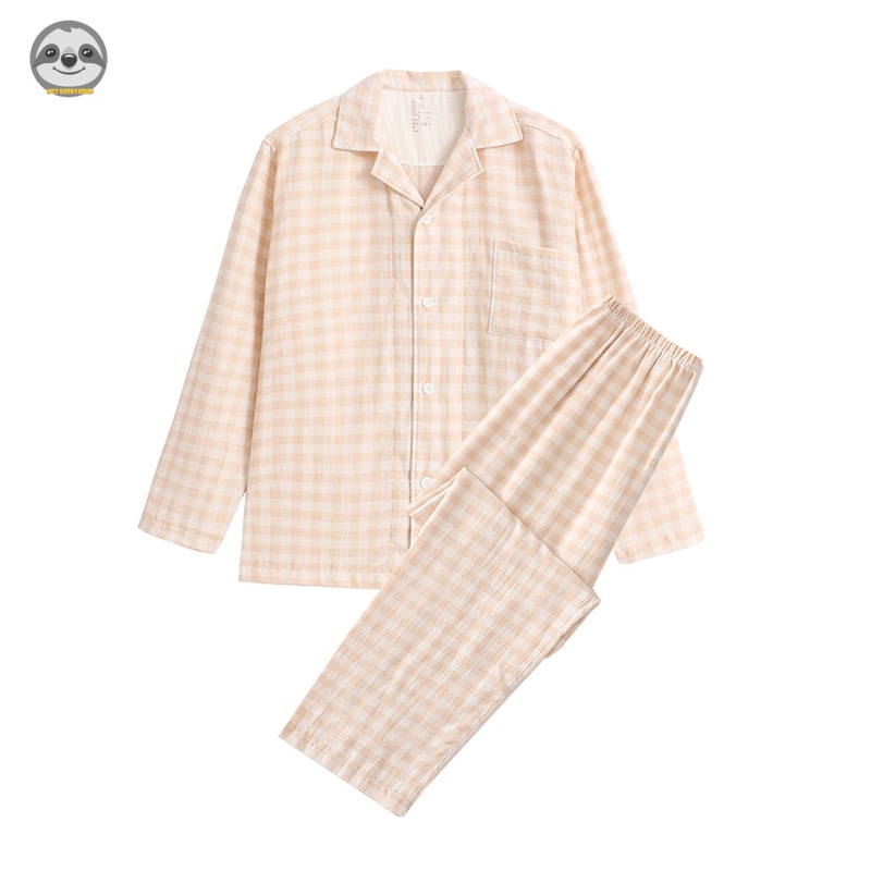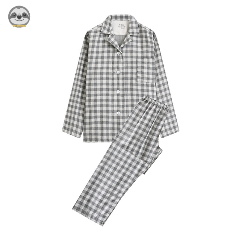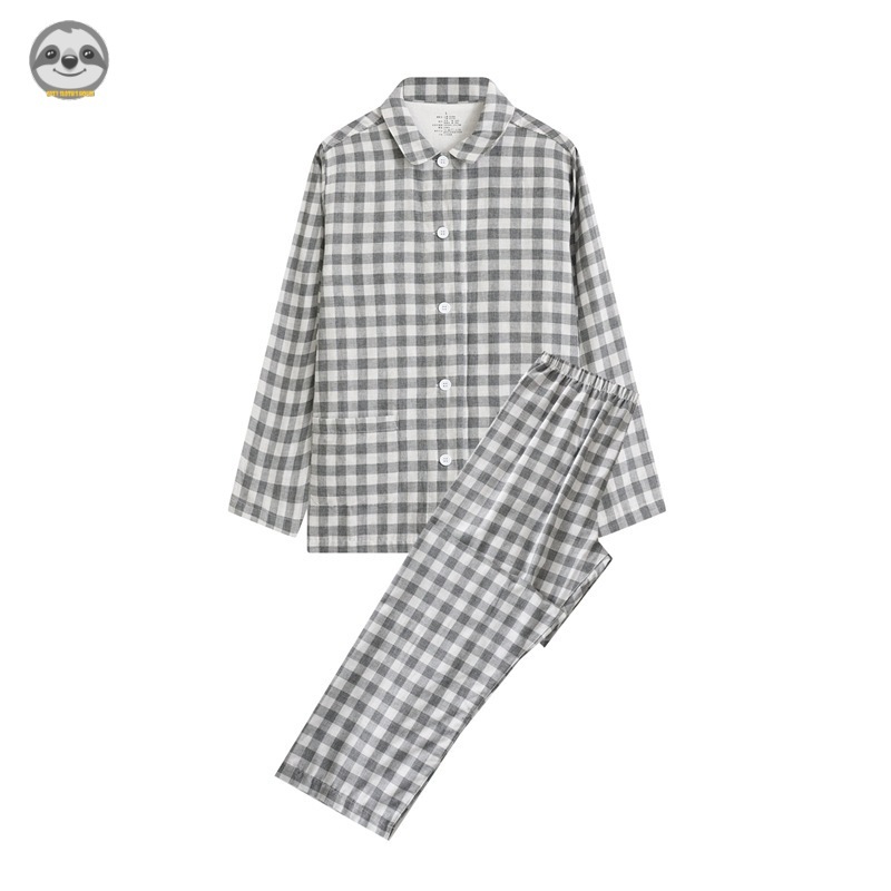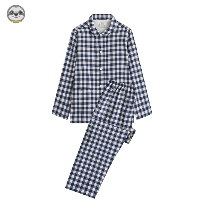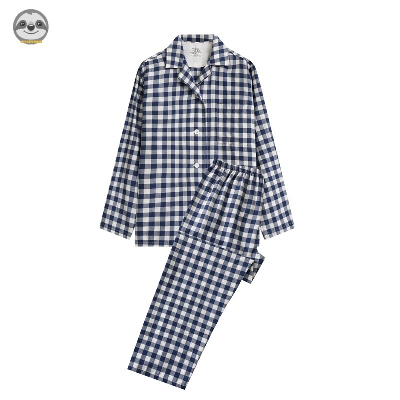ชุดนอนแขนยาว ผ้าฝ้ายแท้ ลายสก๊อต คุณภาพสูง สไตล์ญี่ปุ่น สวมใส่สบาย สําหรับคู่รัก