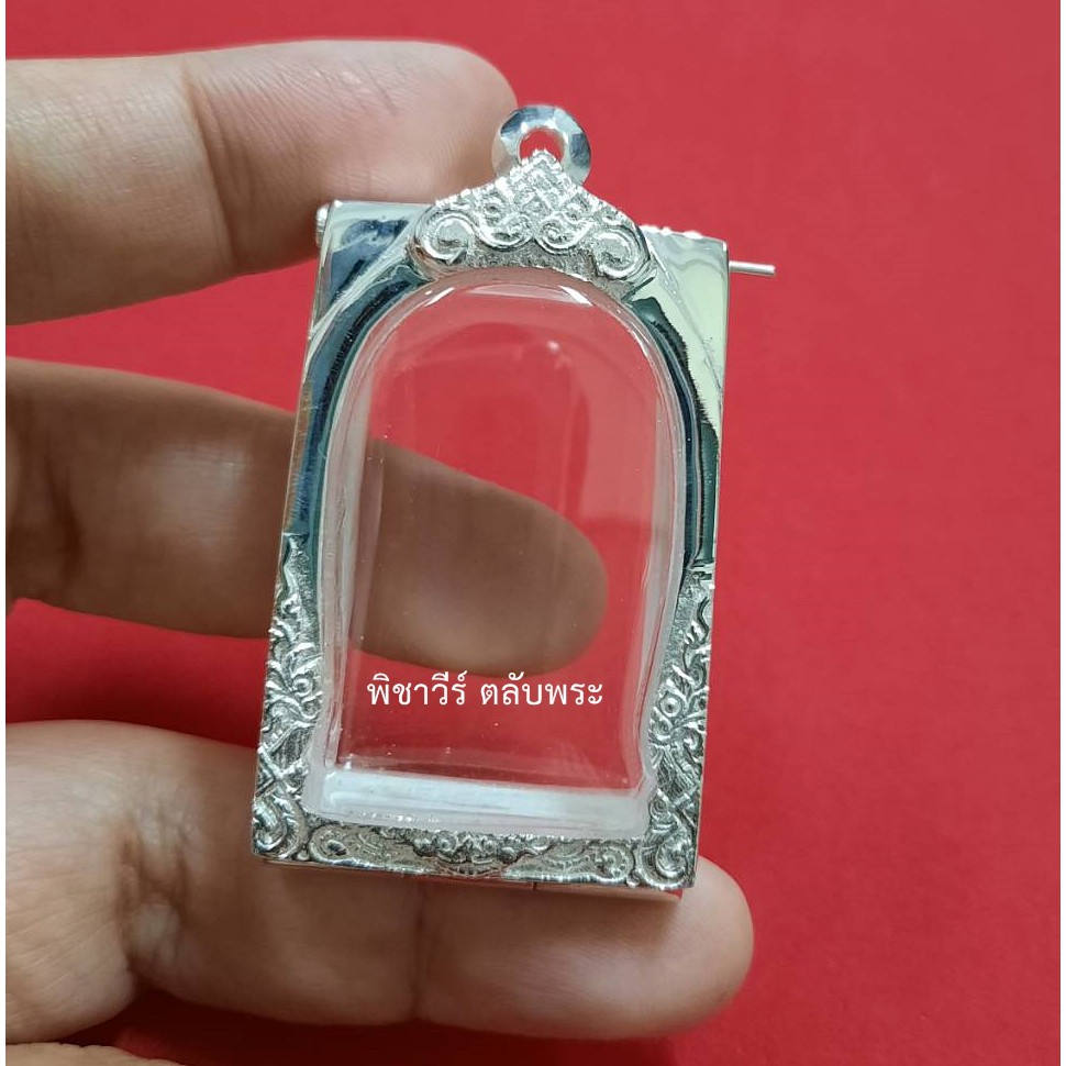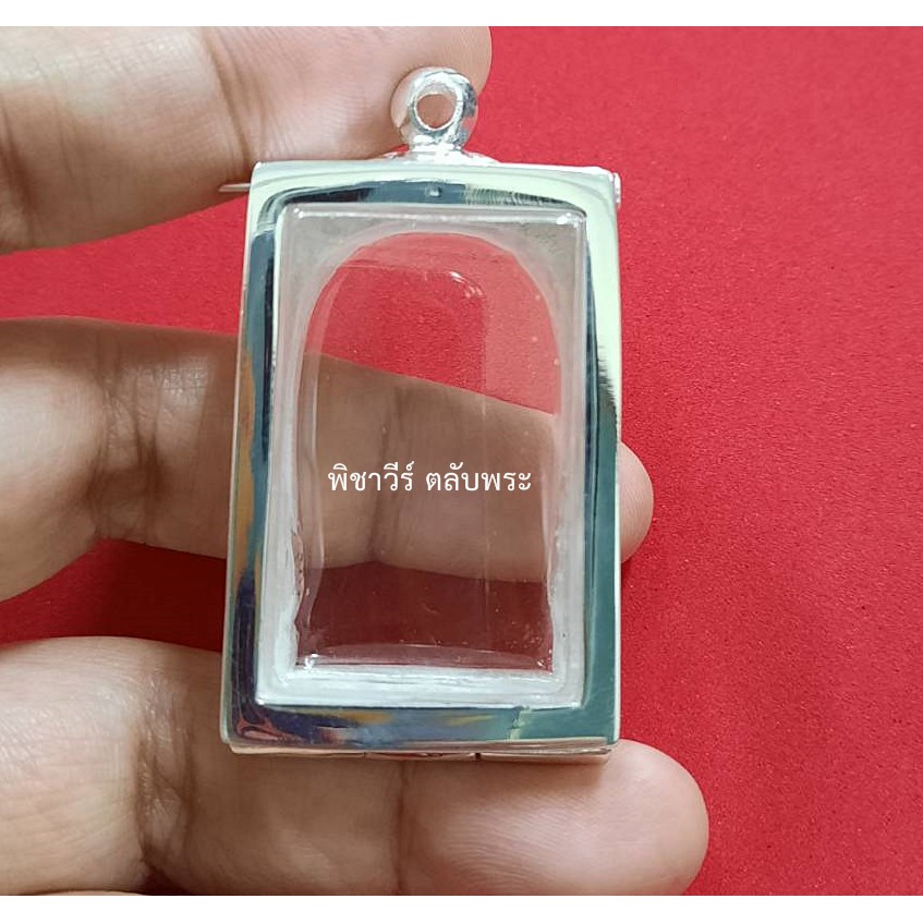 กรอบพระ ตลับเงินขัดเงาเกลี้ยงใส่พระสมเด็จ (หน้าโค้ง)