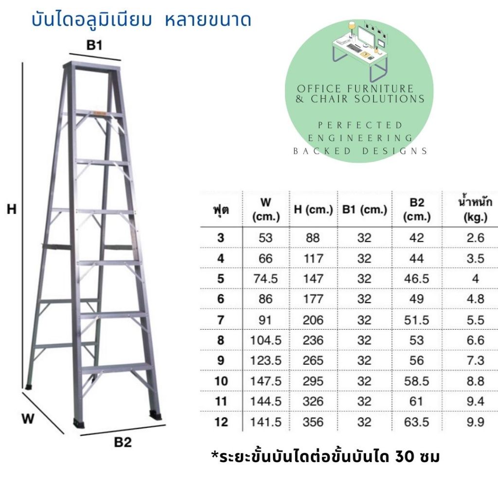 บันไดอลูมิเนียม บันไดทรงเอ หนาพิเศษ มีให้เลือกหลายขนาด