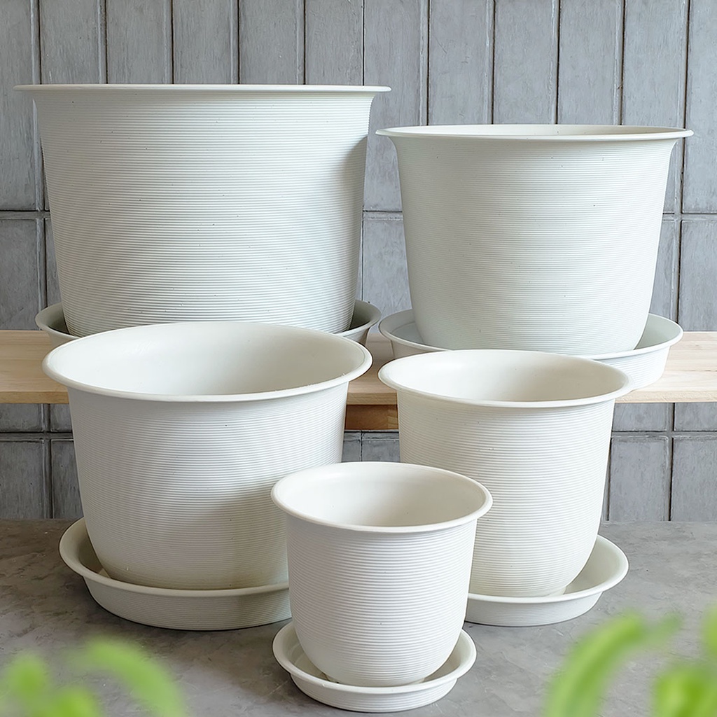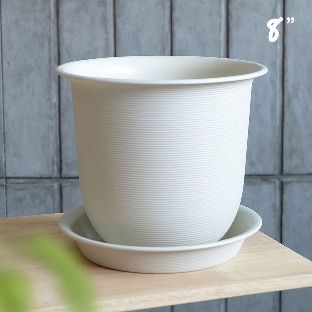 กระถางมินิมอล minimal พลาสติกสีขาว ขนาด 10 นิ้ว 8 นิ้ว 6 นิ้ว พร้อมถาดรอง