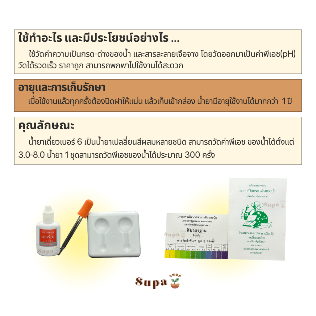 pH Test Kit for Water ชุดตรวจสอบความเป็นกรด-ด่าง ของน้ำ (ชนิดน้ำยาเดี่ยวเบอร์ 6)