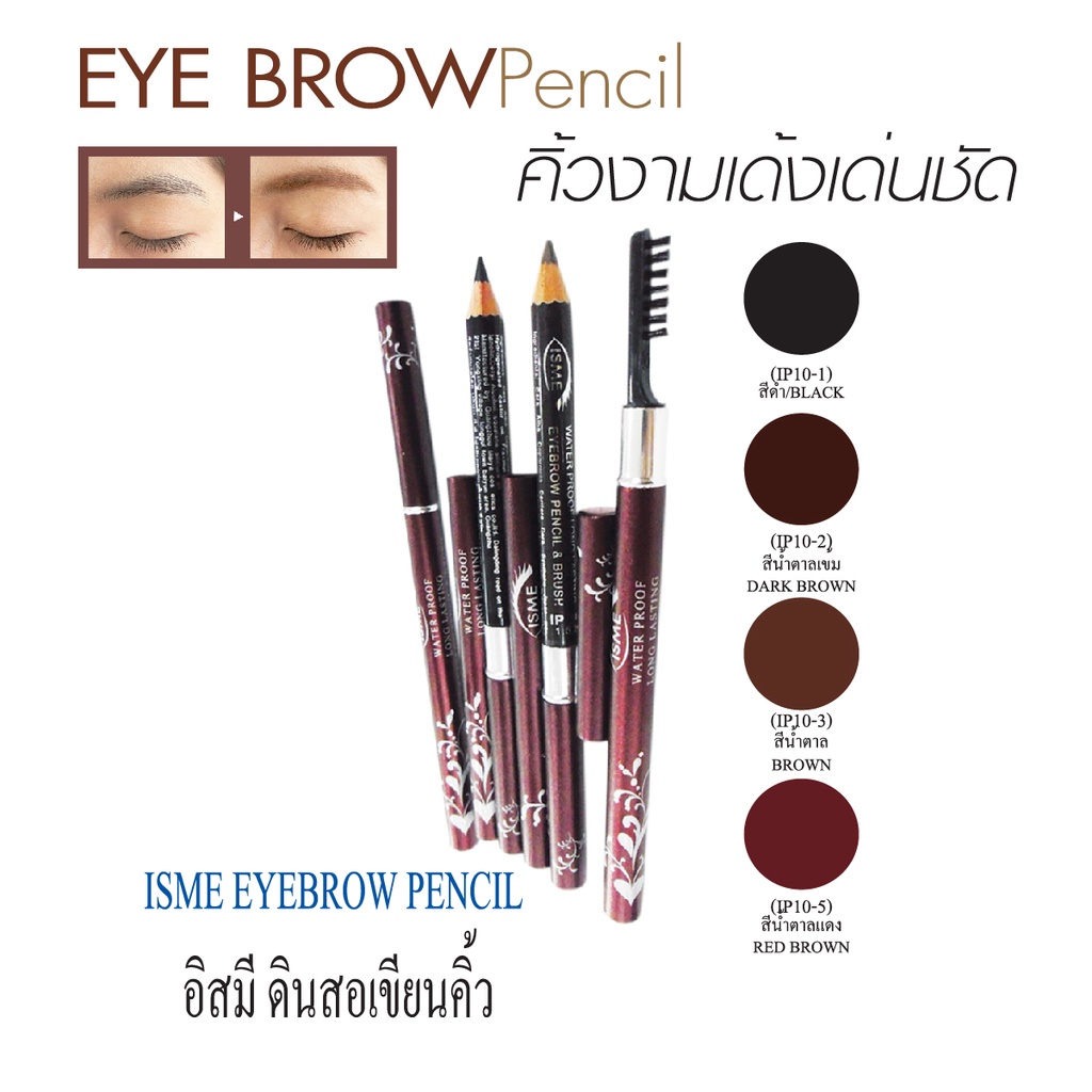 ดินสอเขียนคิ้ว พร้อม หัวแปรง | ซื้อ 1 ฟรี 1 | ISME อิสมี ดินสอเขียนคิ้ว มี 4 สี สีดำ,สีน้ำตาลเข้ม,สีน้ำตาล,สีน้ำตาลแดง