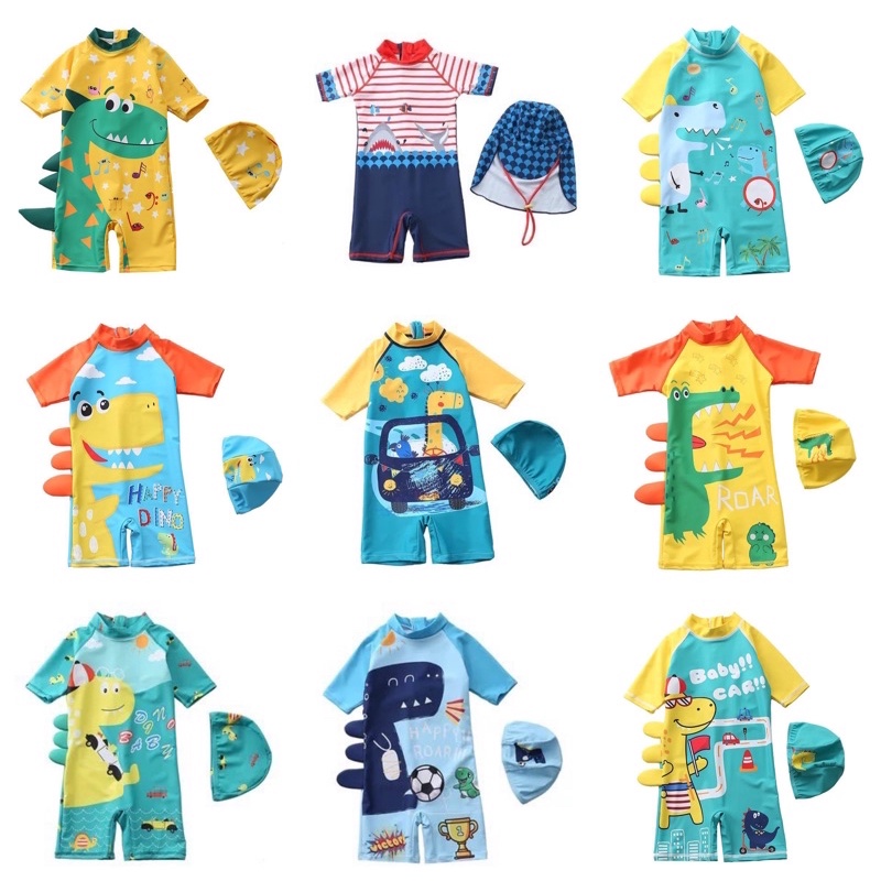 ชุดว่ายน้ำเด็กผู้ชาย2021ลายการ์ตูนแบบน่ารักพร้อมหมวก(80cm-120cm) นื้อผ้าลื่นใส่สบาย รุ่น8-14