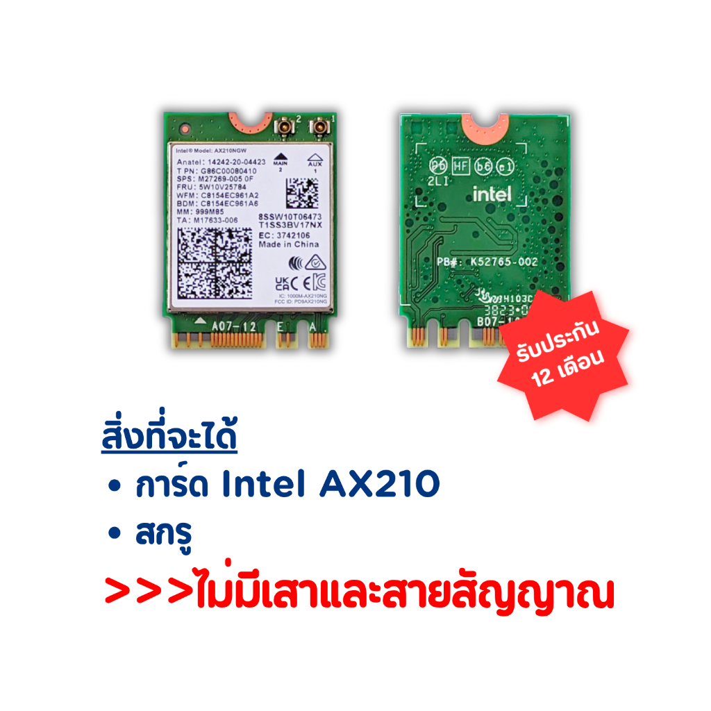 การ์ด WiFi Intel AX210 008 Wi-Fi 6E 802.11ax 2.4/5/6GHz Bluetooth 5.3 M.2 2230 WiFi Card