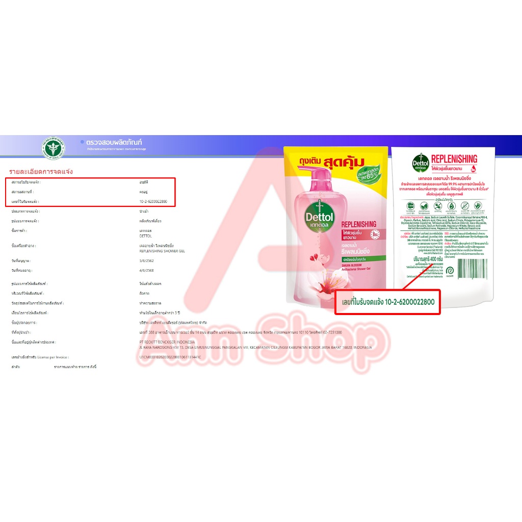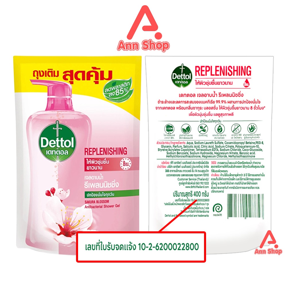 Dettol Replenishing เดทตอล เจลอาบน้ำ รีเพลนนิชชิ่ง 400 มล.[2ถุง สีชมพู]KK 5204 ครีมอาบน้ำ สบู่เหลวอาบน้ำ แอนตี้แบคทีเรีย