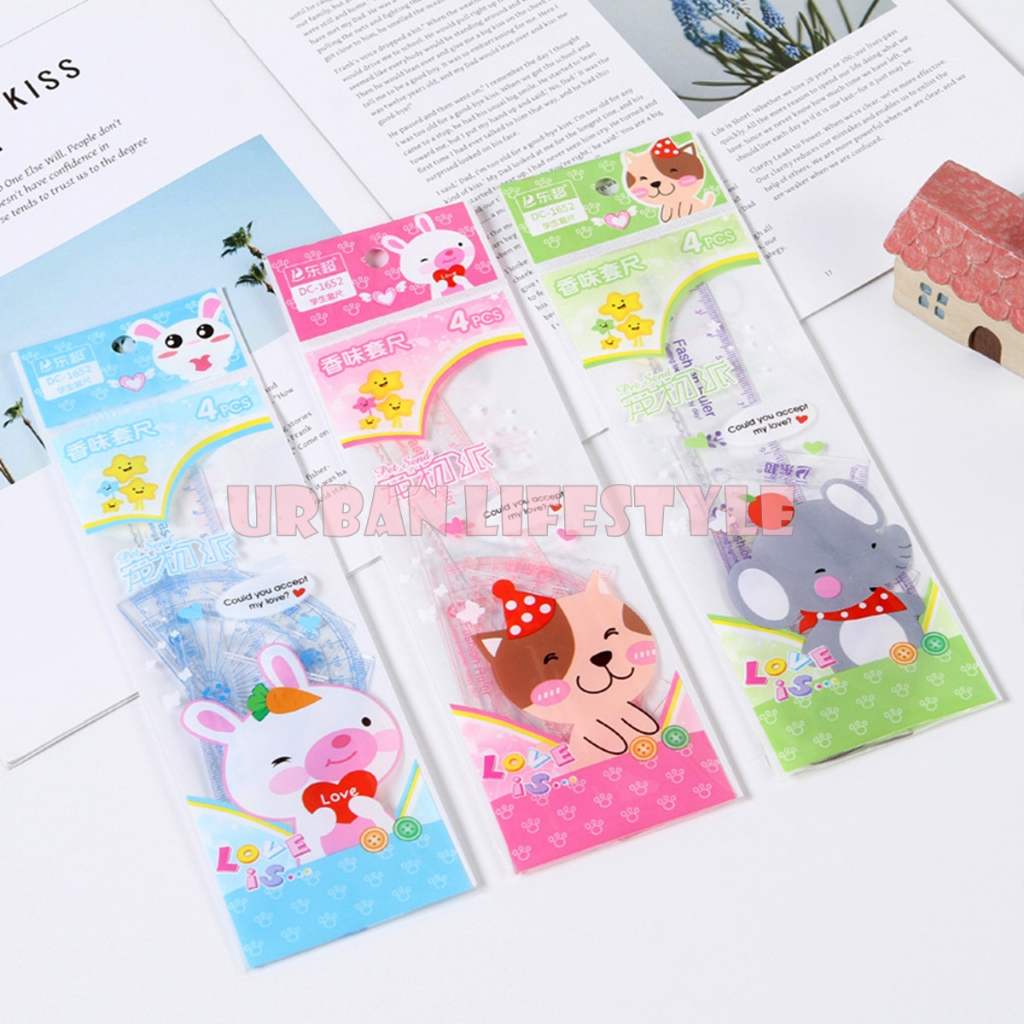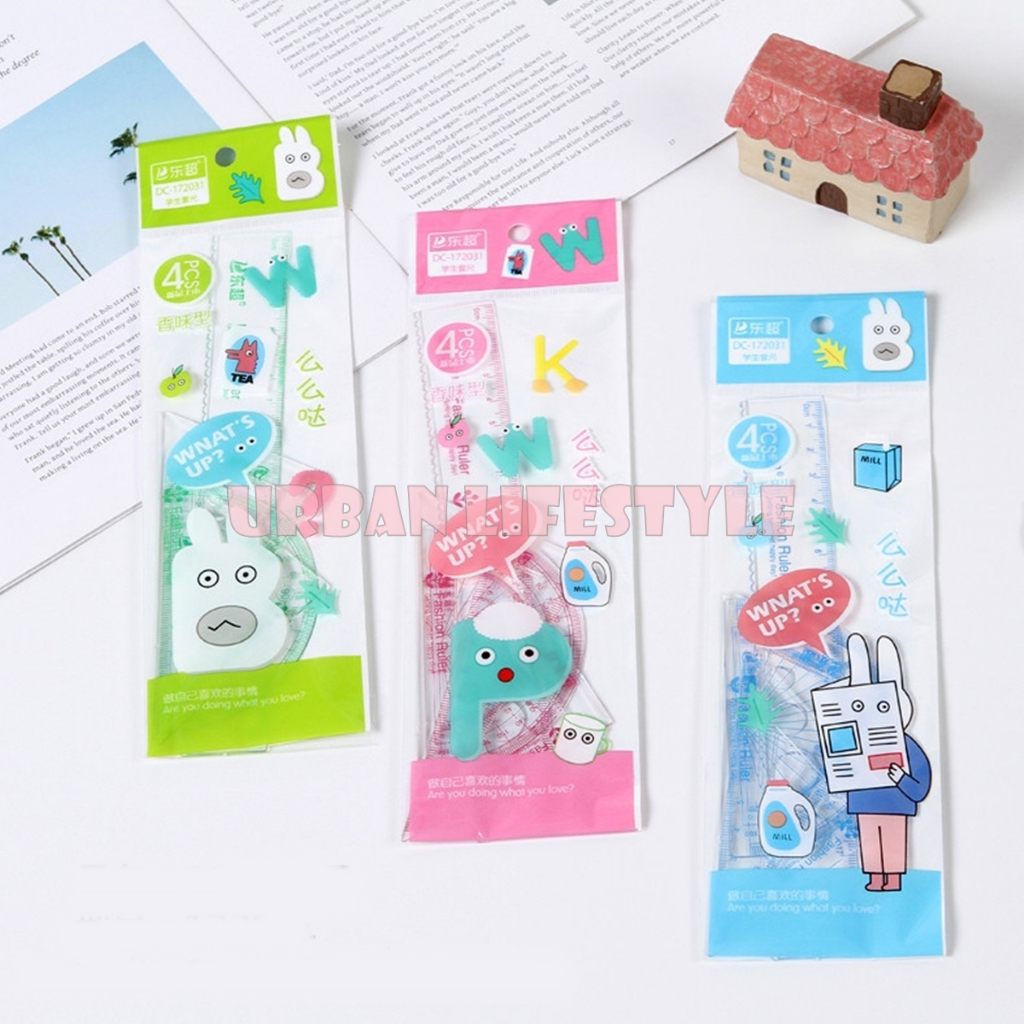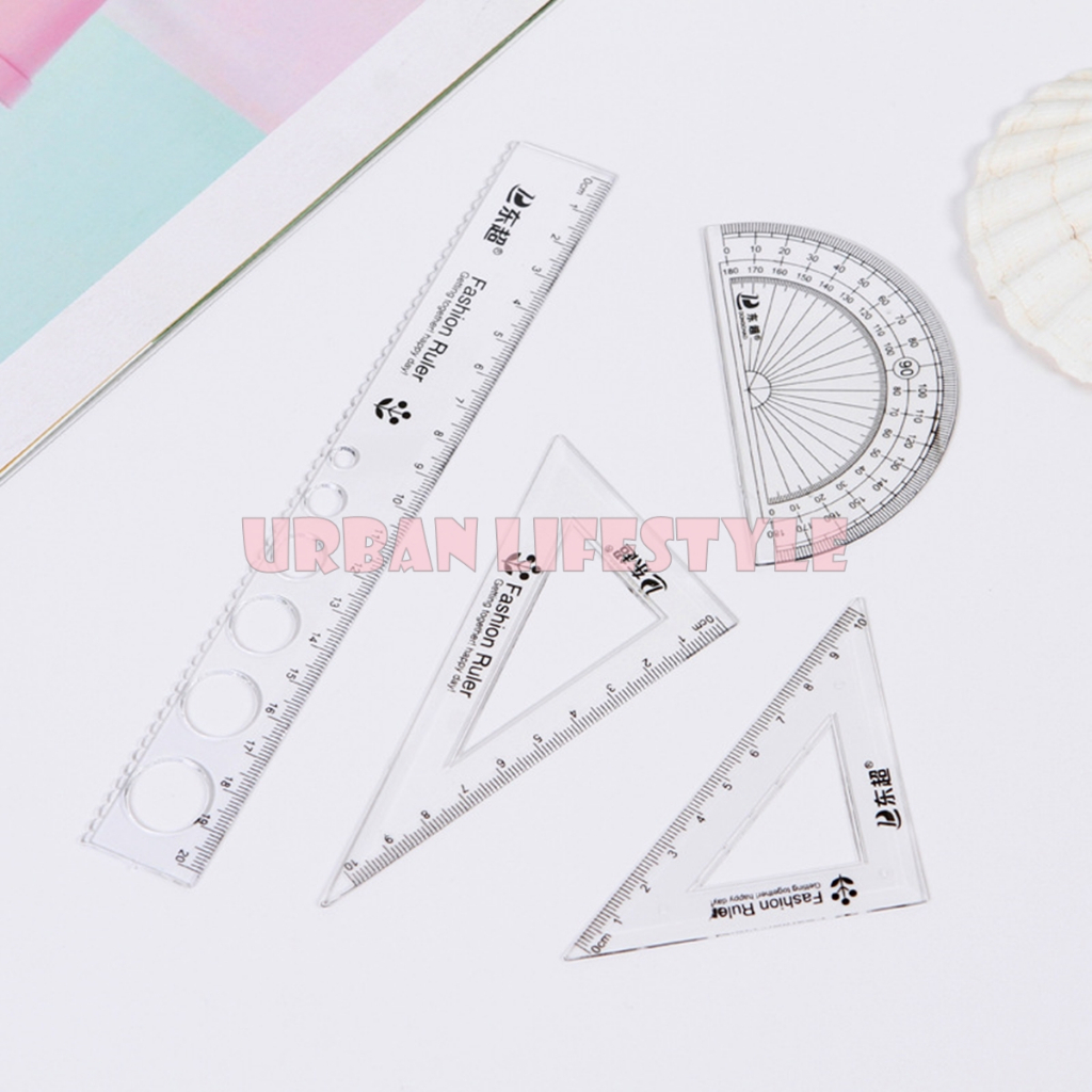 ชุดเรขาคณิต 4 ชิ้น ไม้บรรทัดเรขาคณิต แฟนซี Fancy Geometric Ruler Set คละลาย 1 ชุด