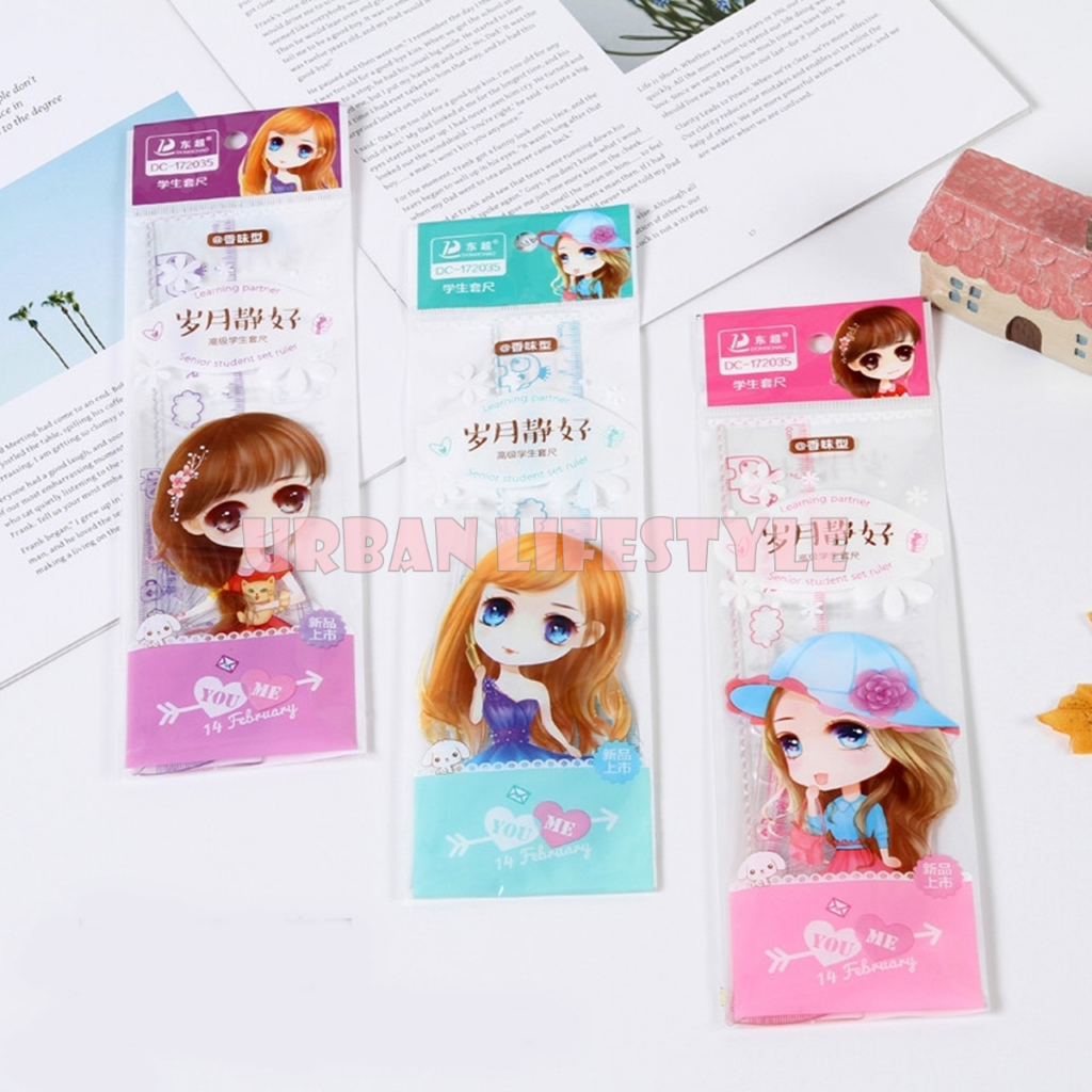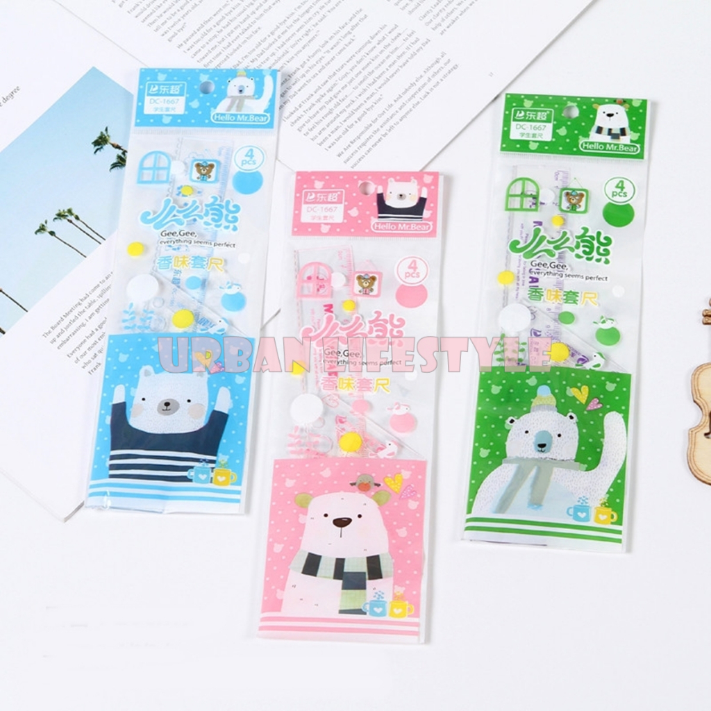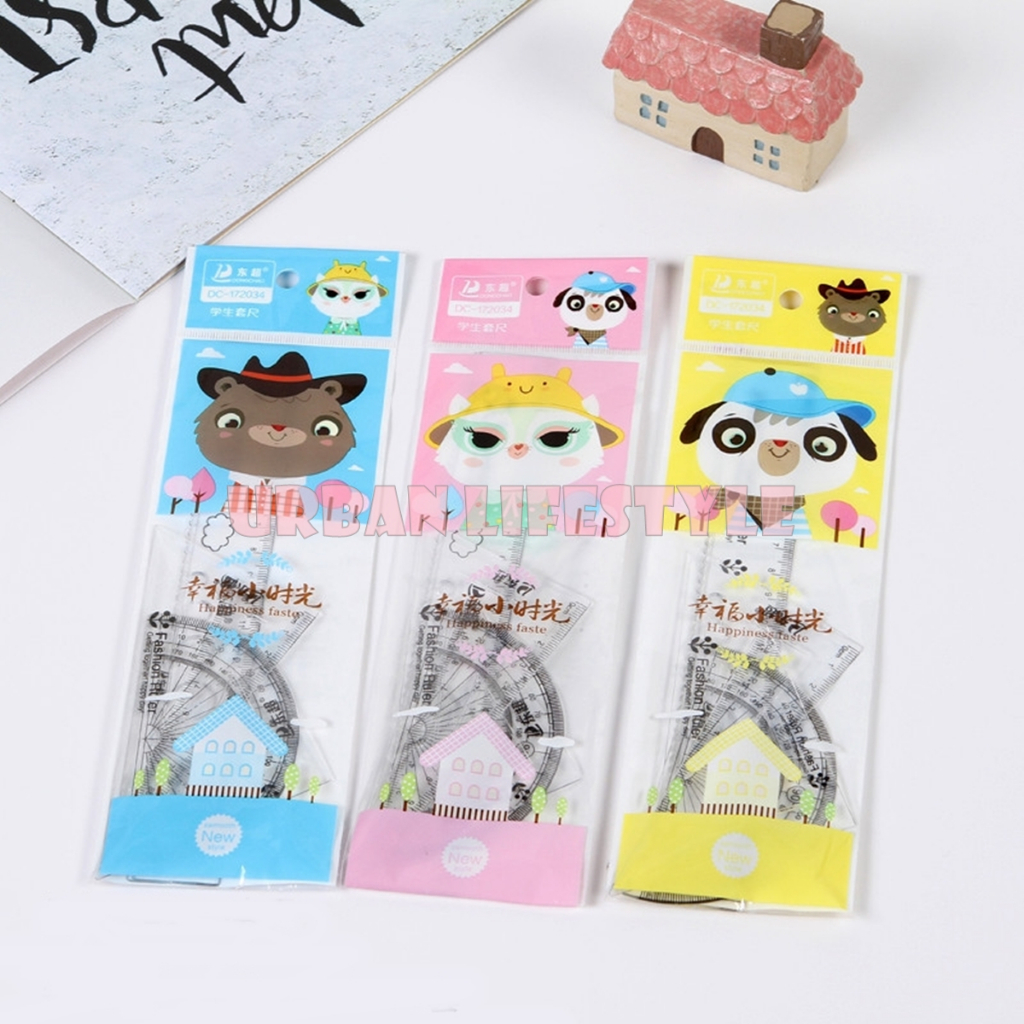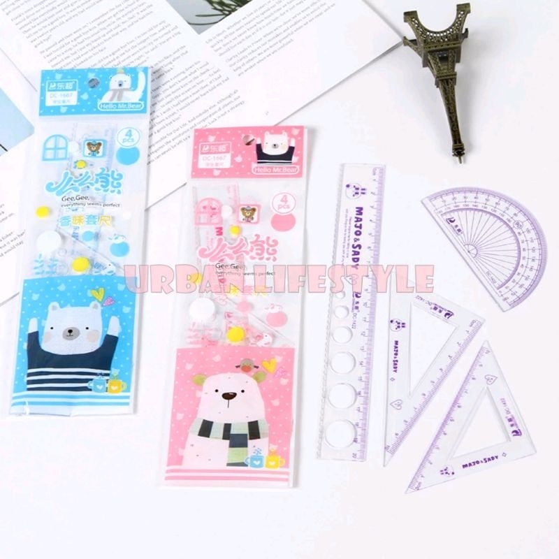 ชุดเรขาคณิต 4 ชิ้น ไม้บรรทัดเรขาคณิต แฟนซี Fancy Geometric Ruler Set คละลาย 1 ชุด