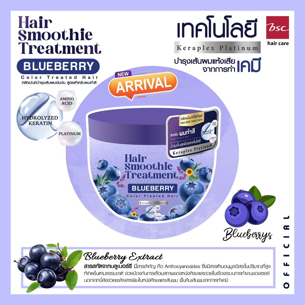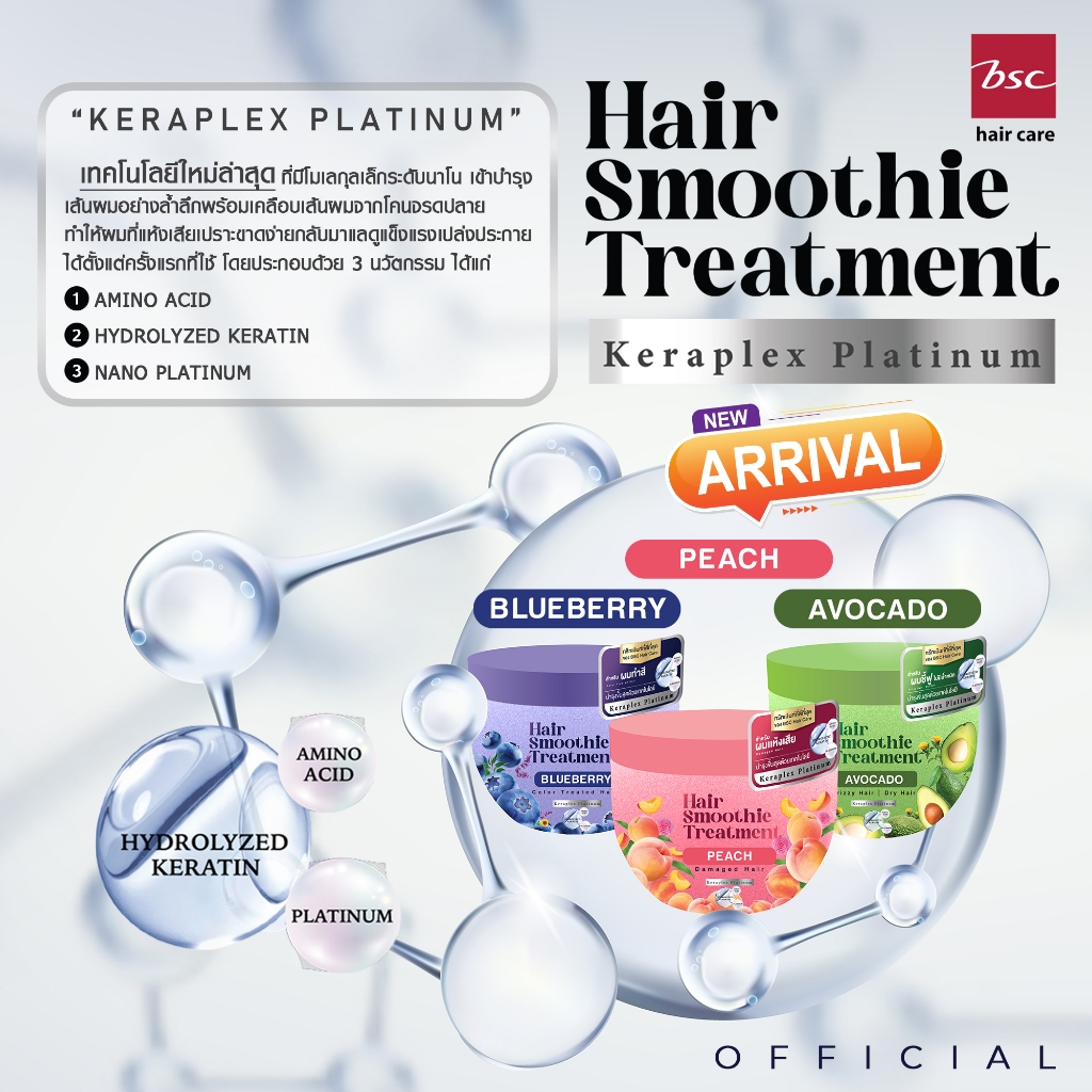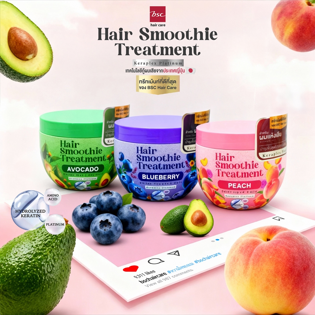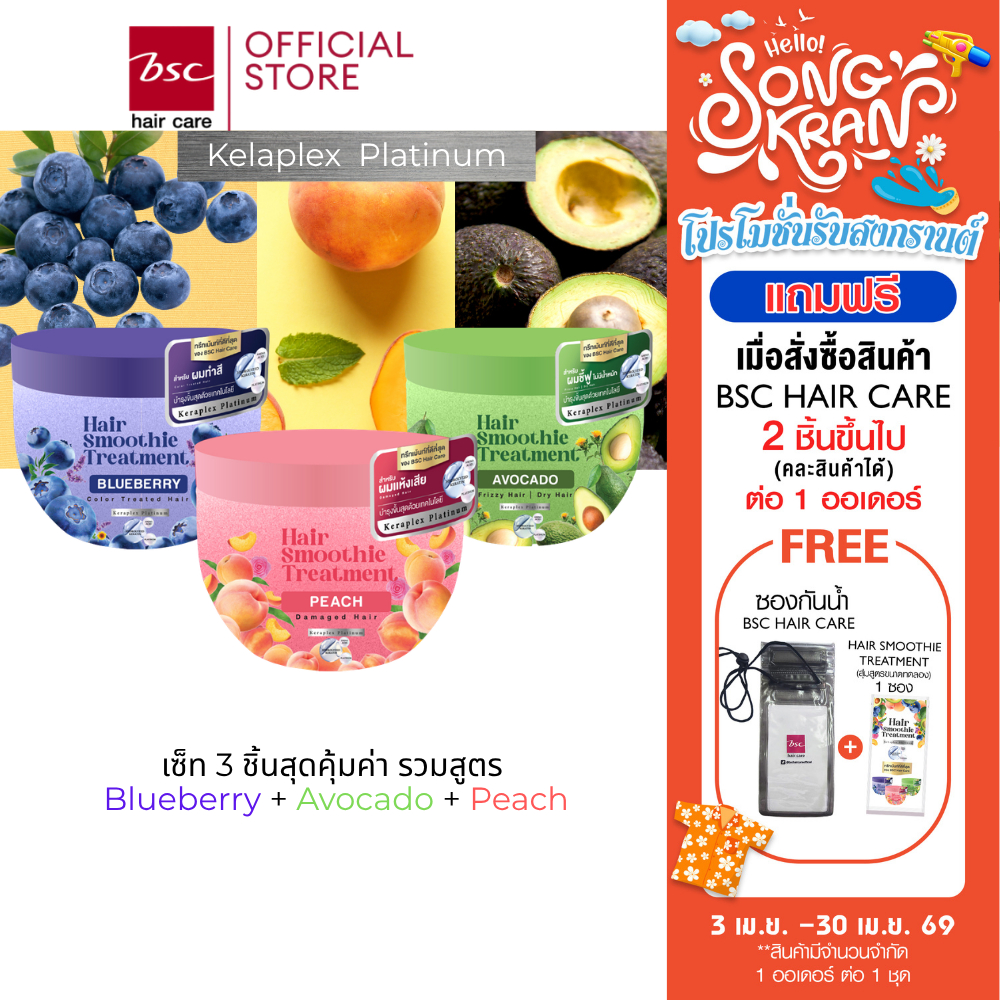 (แพ็ค 3 ชิ้นสุดคุ้ม) BSC hair care Hair Smoothie Treatment 400g (BIZHBS44) BLUEBERRY PEACH AVOCADO