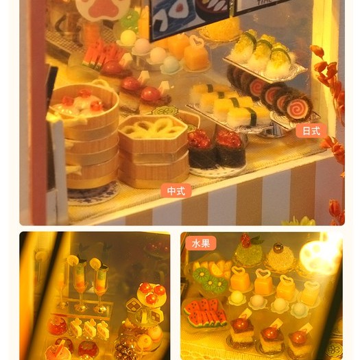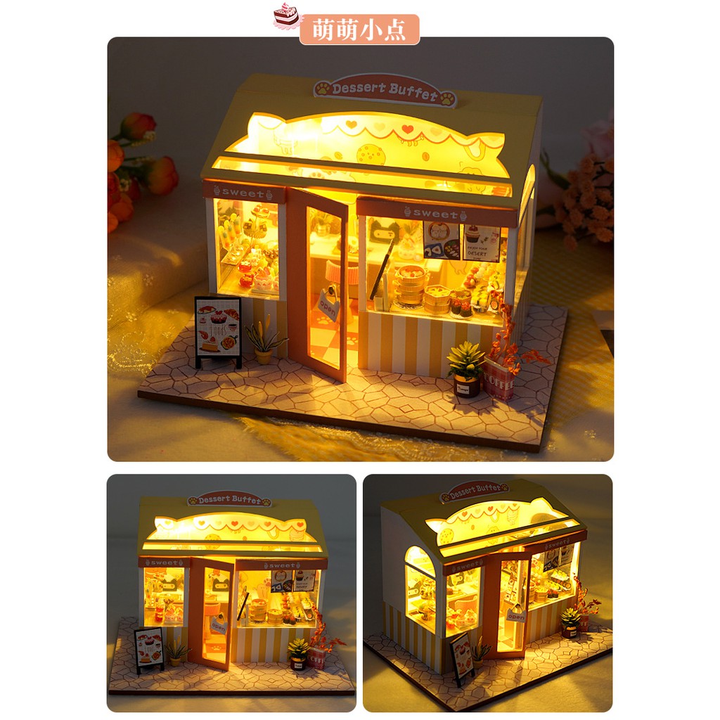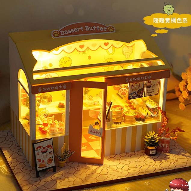 [พร้อมส่ง] บ้านจิ๋ว DIY ประกอบเอง ร้านขนม Dessert Buffet เปิดไฟได้ แถมอุปกรณ์ครบ (IYU-TD34)