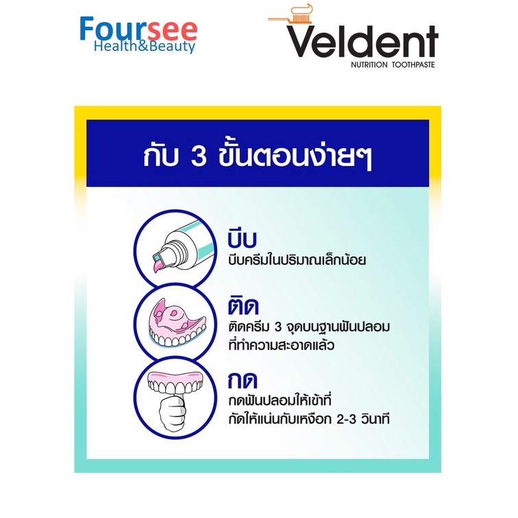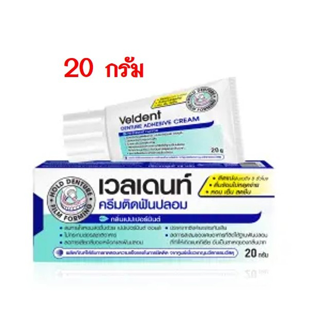 ครีมติดฟันปลอม Veldent Denture Adhesive Cream กลิ่นเปปเปอร์มิ้นต์ 20 และ 60 กรัม