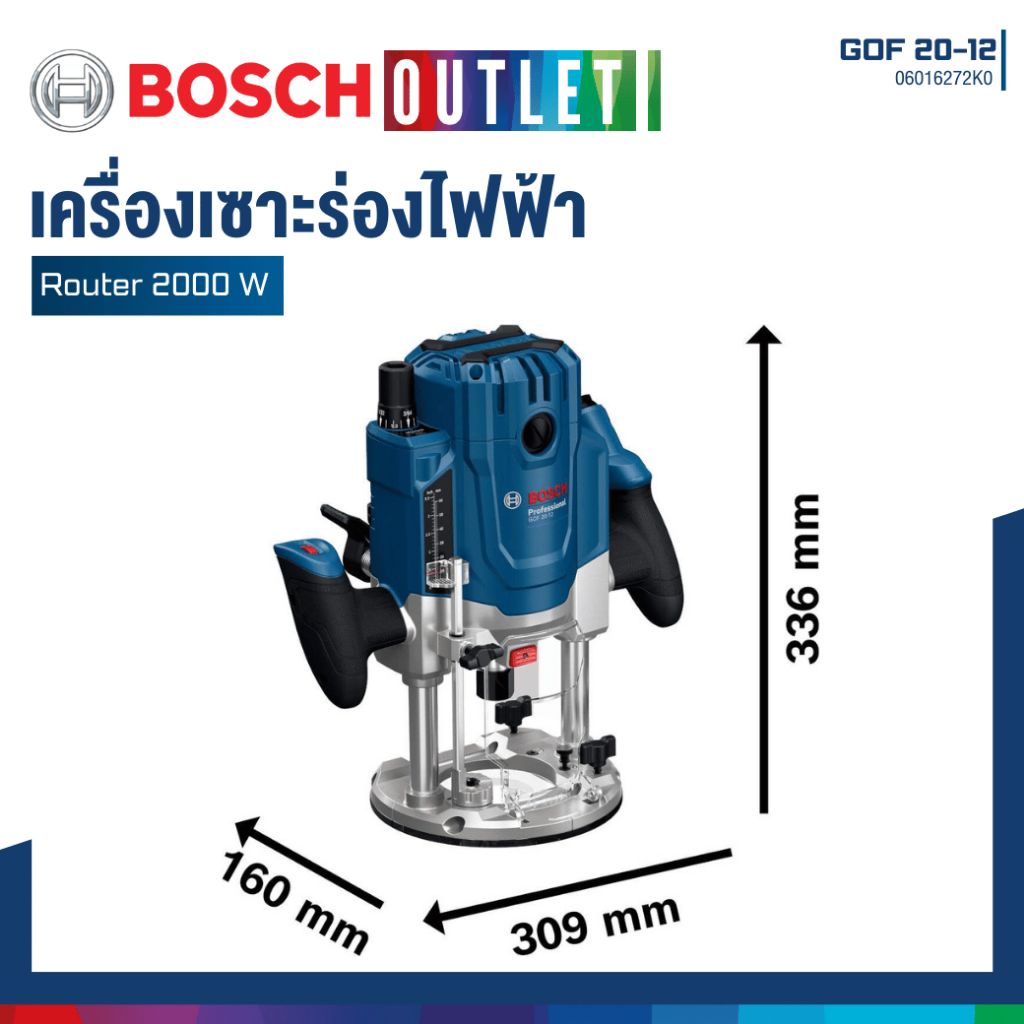 BOSCH GOF 20-12 เครื่องเซาะร่องไฟฟ้า 2000 วัตต์ #06016272K0