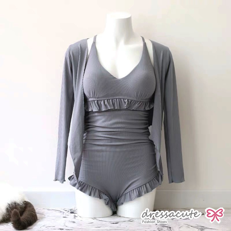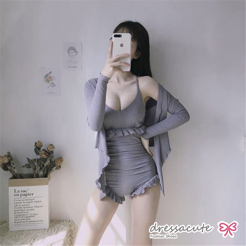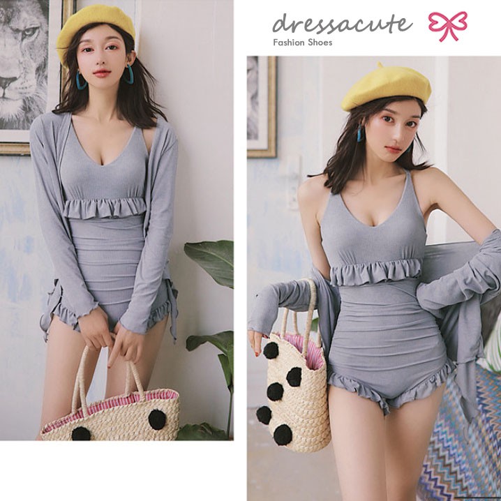 ใหม่ล่าสุด 🍓 ชุดว่ายน้ำ น่ารัก ใส่แล้วไม่โป๊ เอวสูง มีเสื้อคลุม 2151