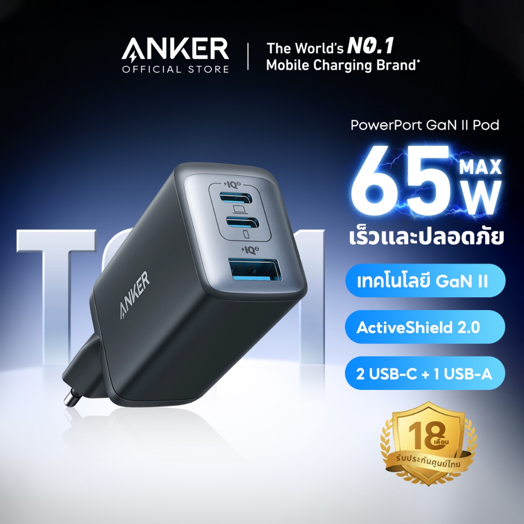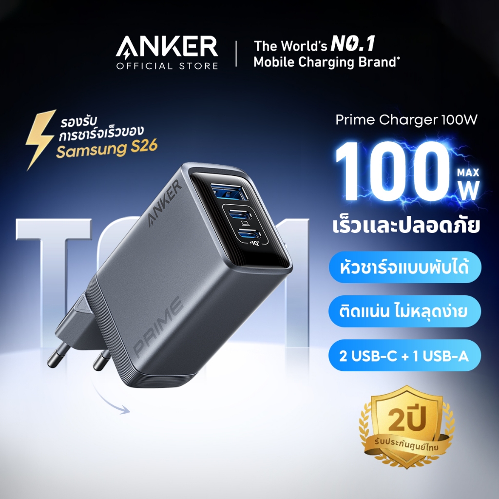 [จัดส่งภายใน 24 ชม.]Anker Prime Charger (100W, 3 Ports, GaN) หัวชาร์จเร็ว PD Fast Charger สําหรับ iPhone 17/16 MacBook