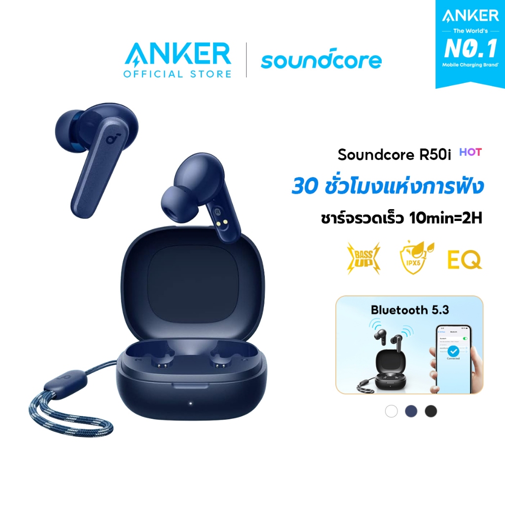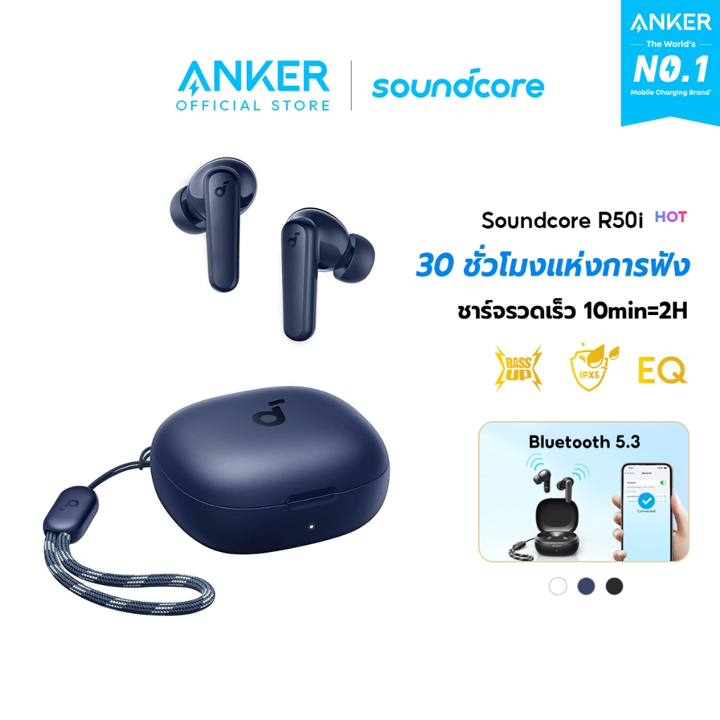 Soundcore by Anker R50i หูฟังบลูทูธ สายหูฟังไร BassUp หูฟังไร้สาย บลูทูธ 5.3 EQ และกันน้ําระดับ IPX5