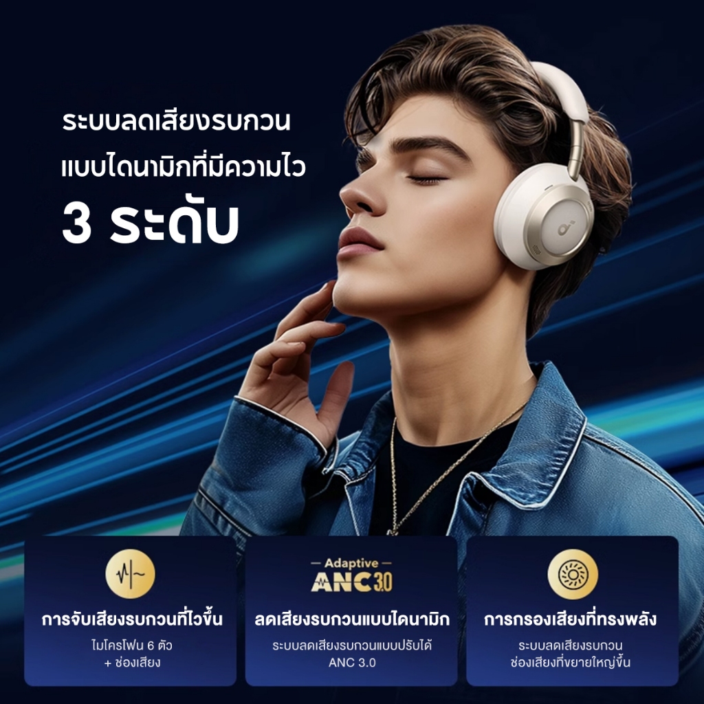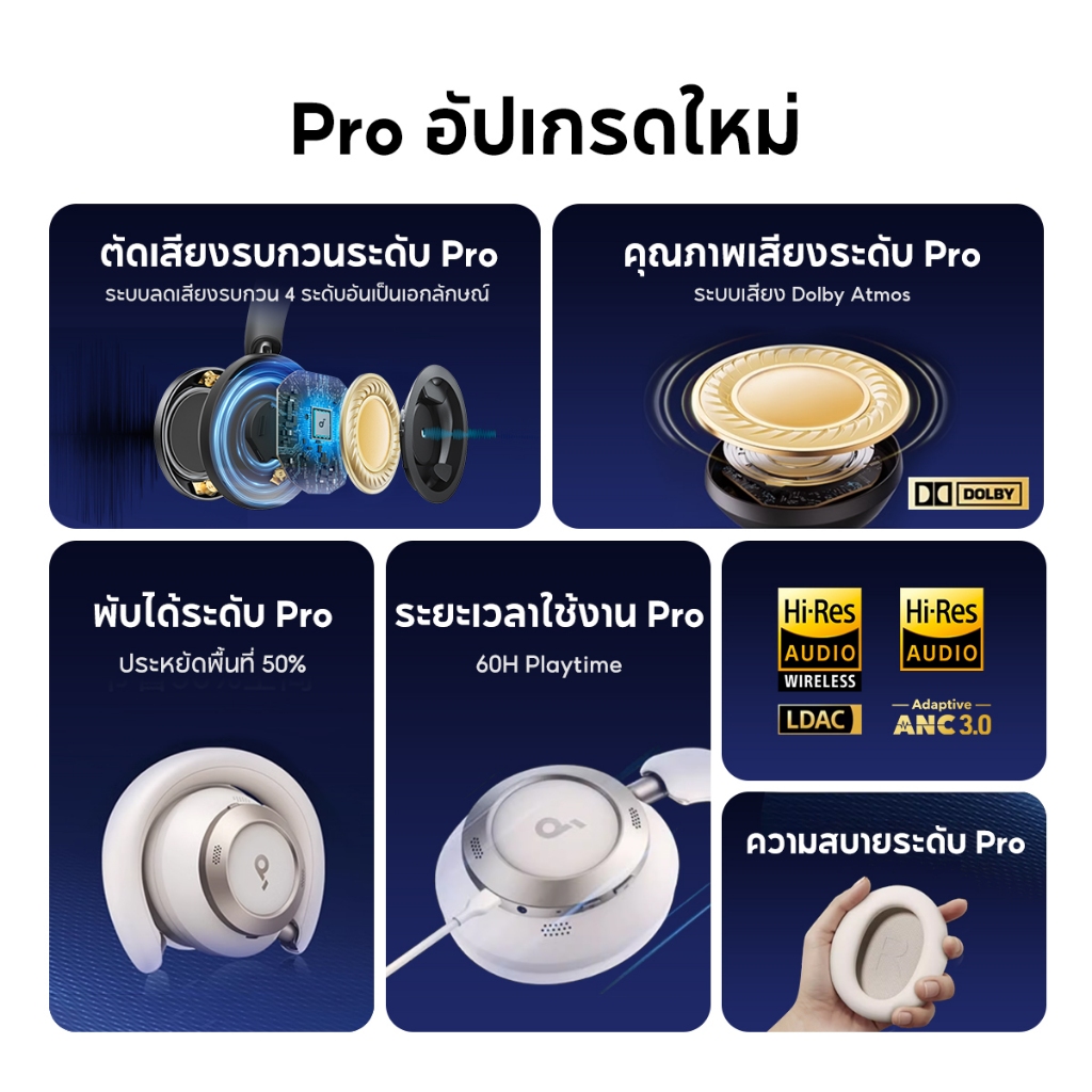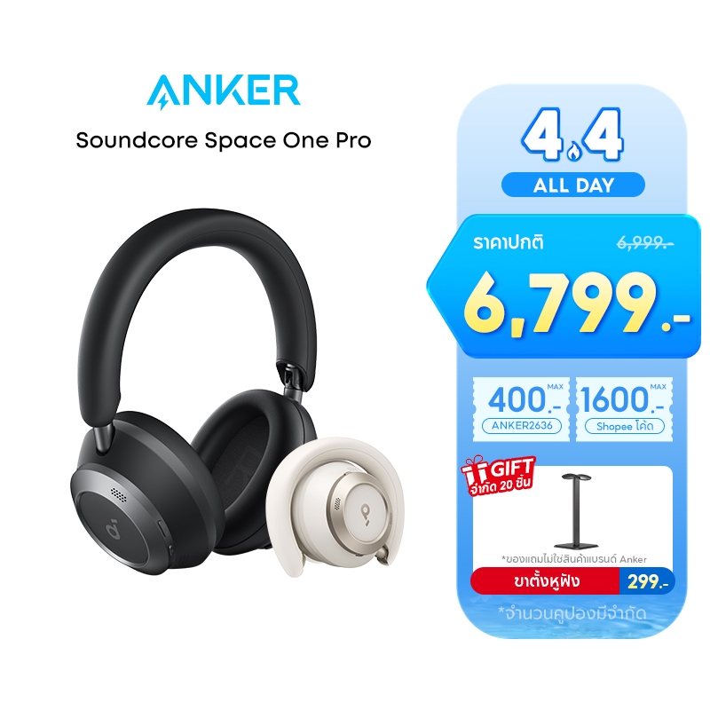 Soundcore Space One Pro Foldable Over-Ear Headphones หูฟังบลูทูธไร้สาย หูฟังตัดเสียงรบกวน หูฟังไร้สาย Adaptive ANC A3062