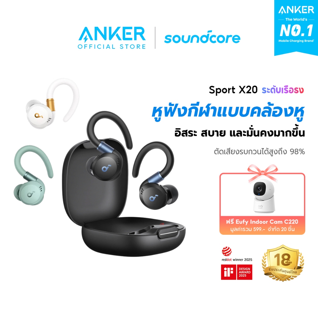 Soundcore Sport X20 True-Wireless Sport Earbuds with Hook หูฟังบลูทูธ หูฟังออกกำลังกาย Adaptive ANC หูฟังไร้ส