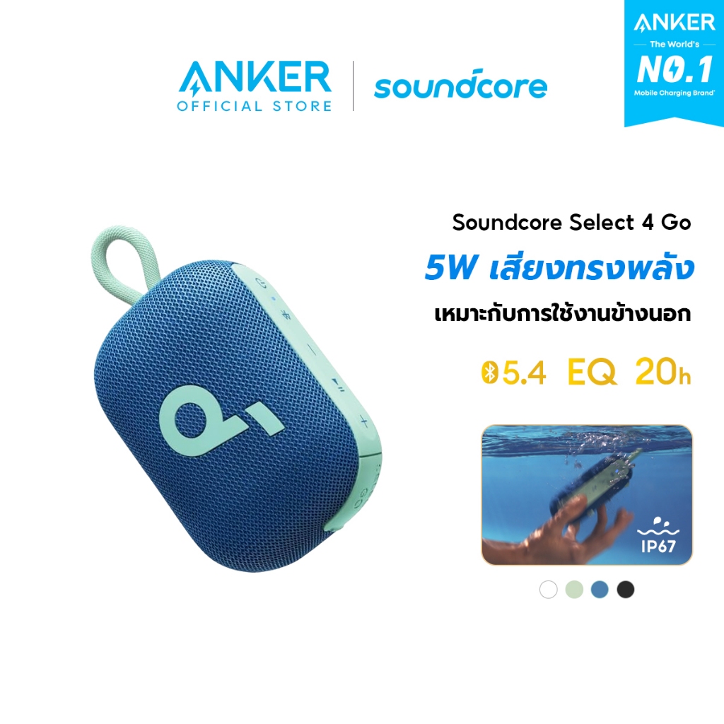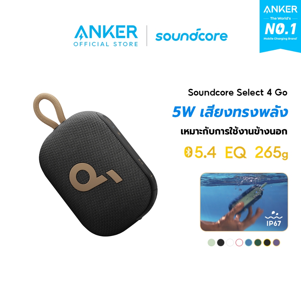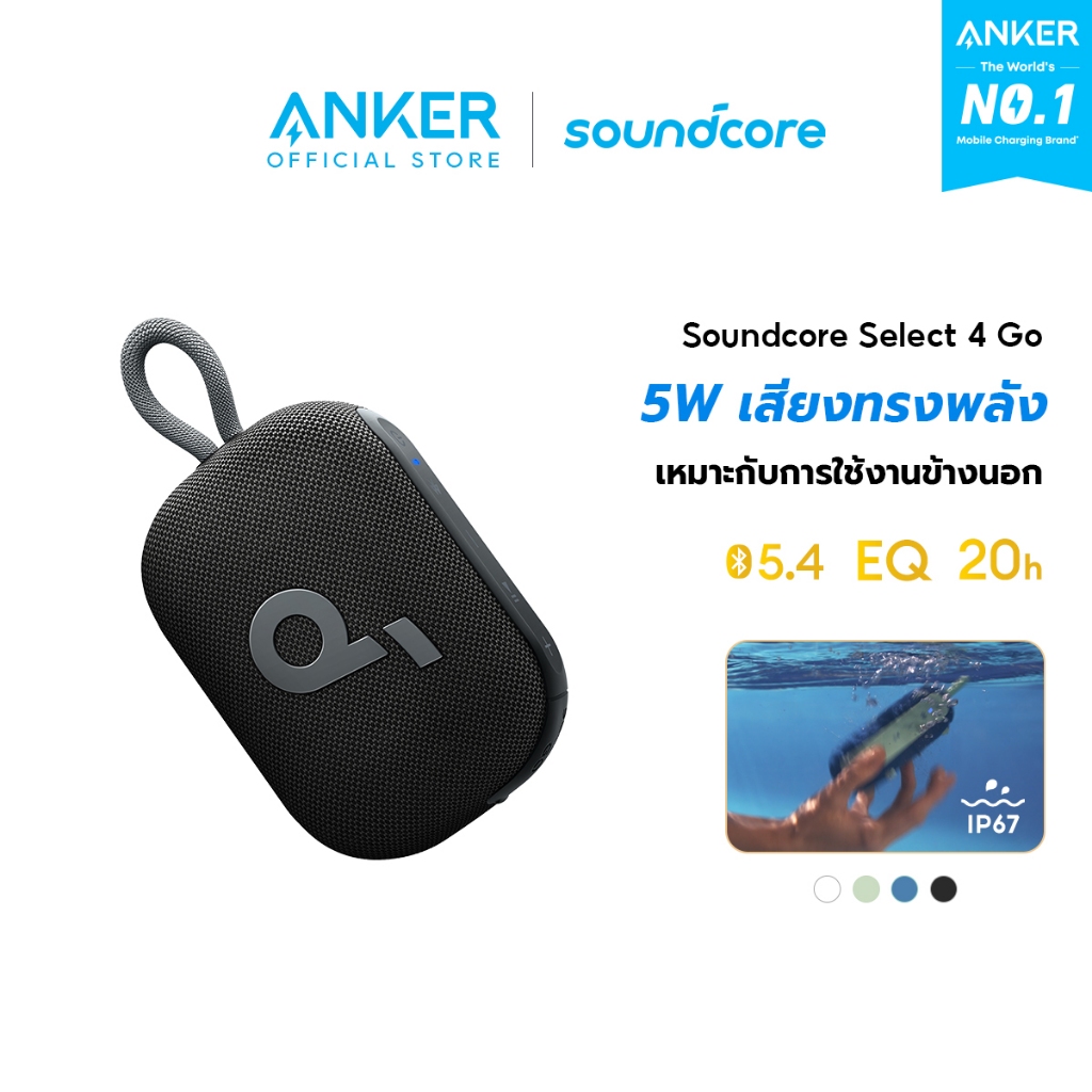 [HOT]Soundcore Anker Select 4 Go Bluetooth Speaker ลําโพง บลูทูธ ซับวูฟเฟอร์ ลําโพงพกพา ตั้งค่า EQ IP67 กันน้ำ Up to 20H