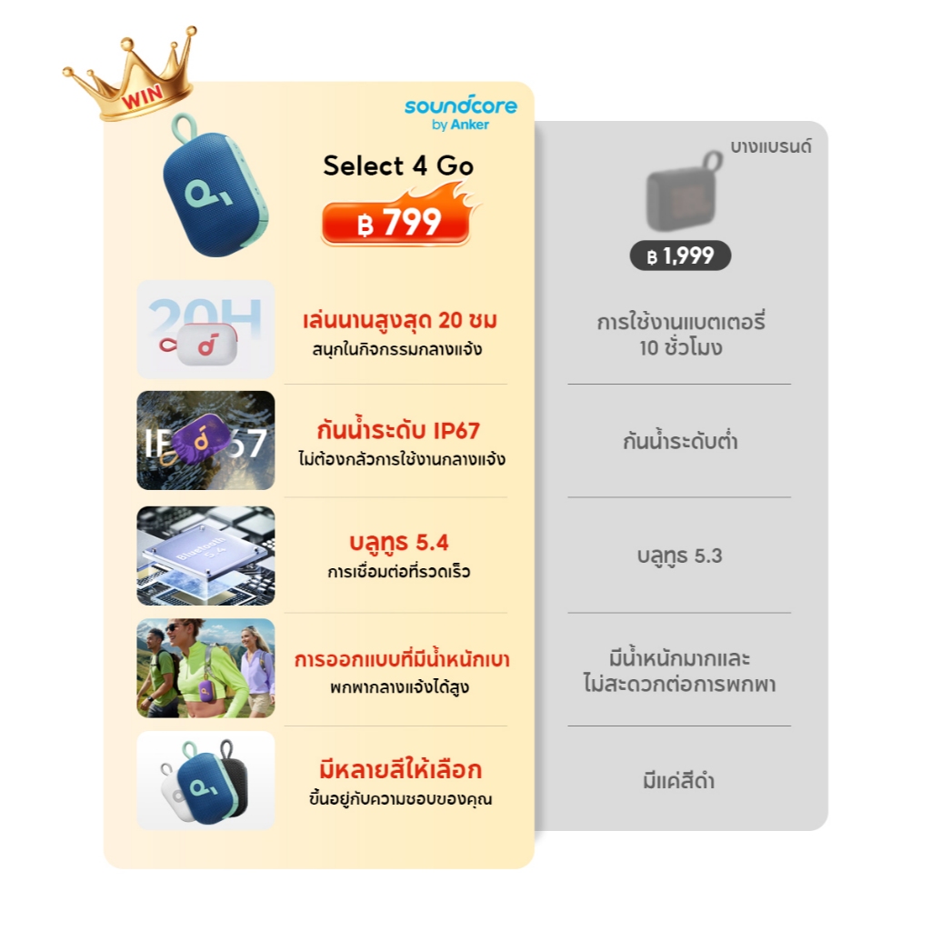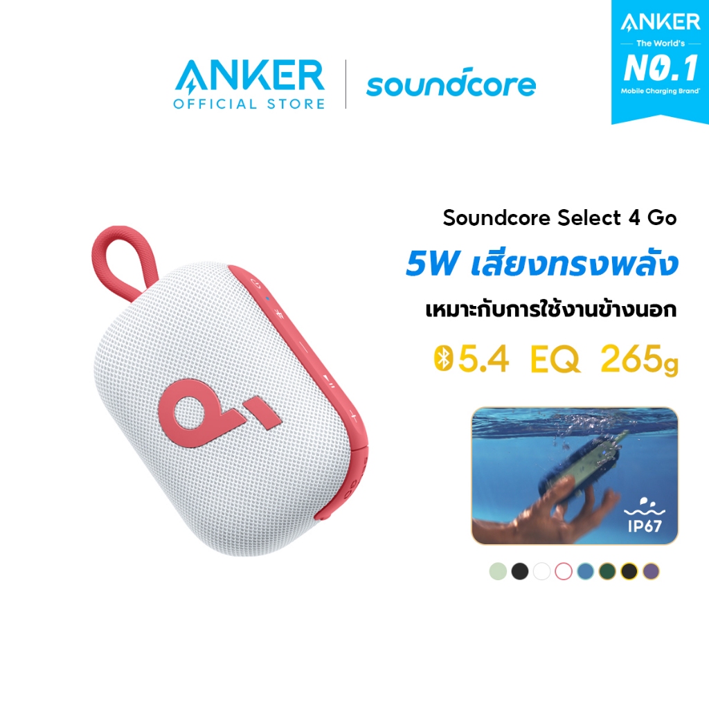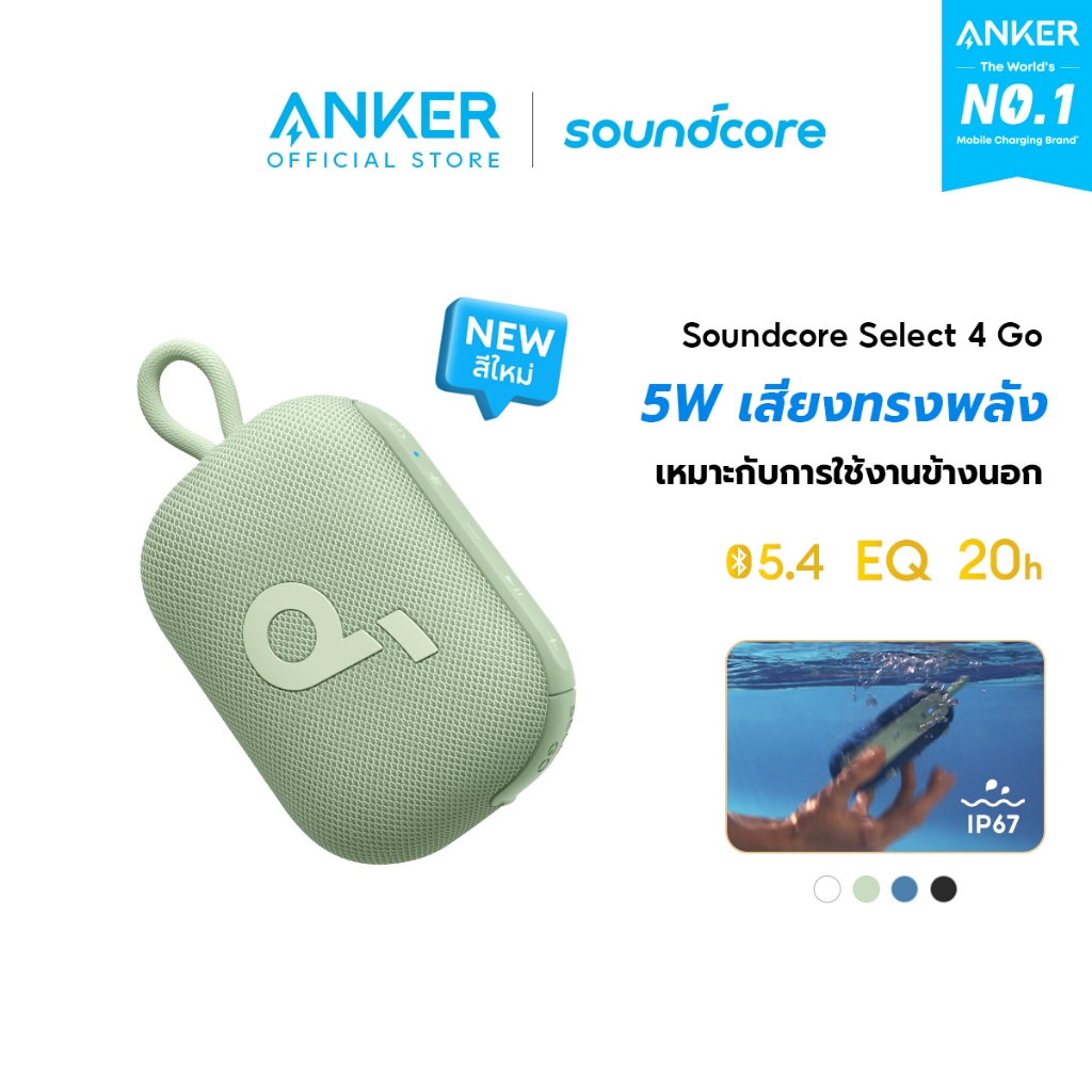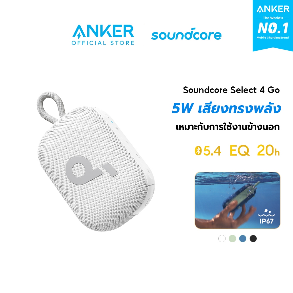 [HOT]Soundcore Anker Select 4 Go Bluetooth Speaker ลําโพง บลูทูธ ซับวูฟเฟอร์ ลําโพงพกพา ตั้งค่า EQ IP67 กันน้ำ Up to 20H