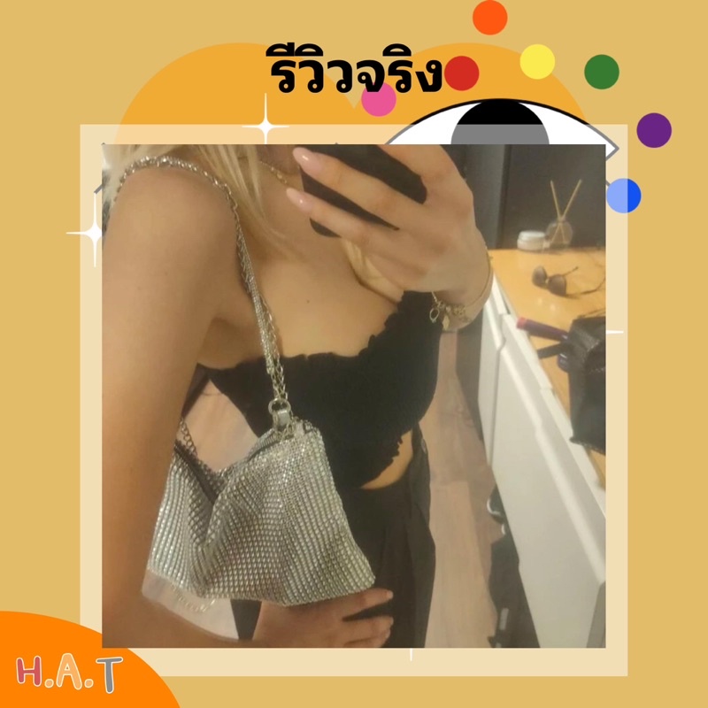 กระเป๋าสะพายเพชร รุ่นใบใหญ่ พร้อมสายถือ+สายยาว ตัวสายถือเป็นเพชรสวยมากกเหมือนเดิม⚡️