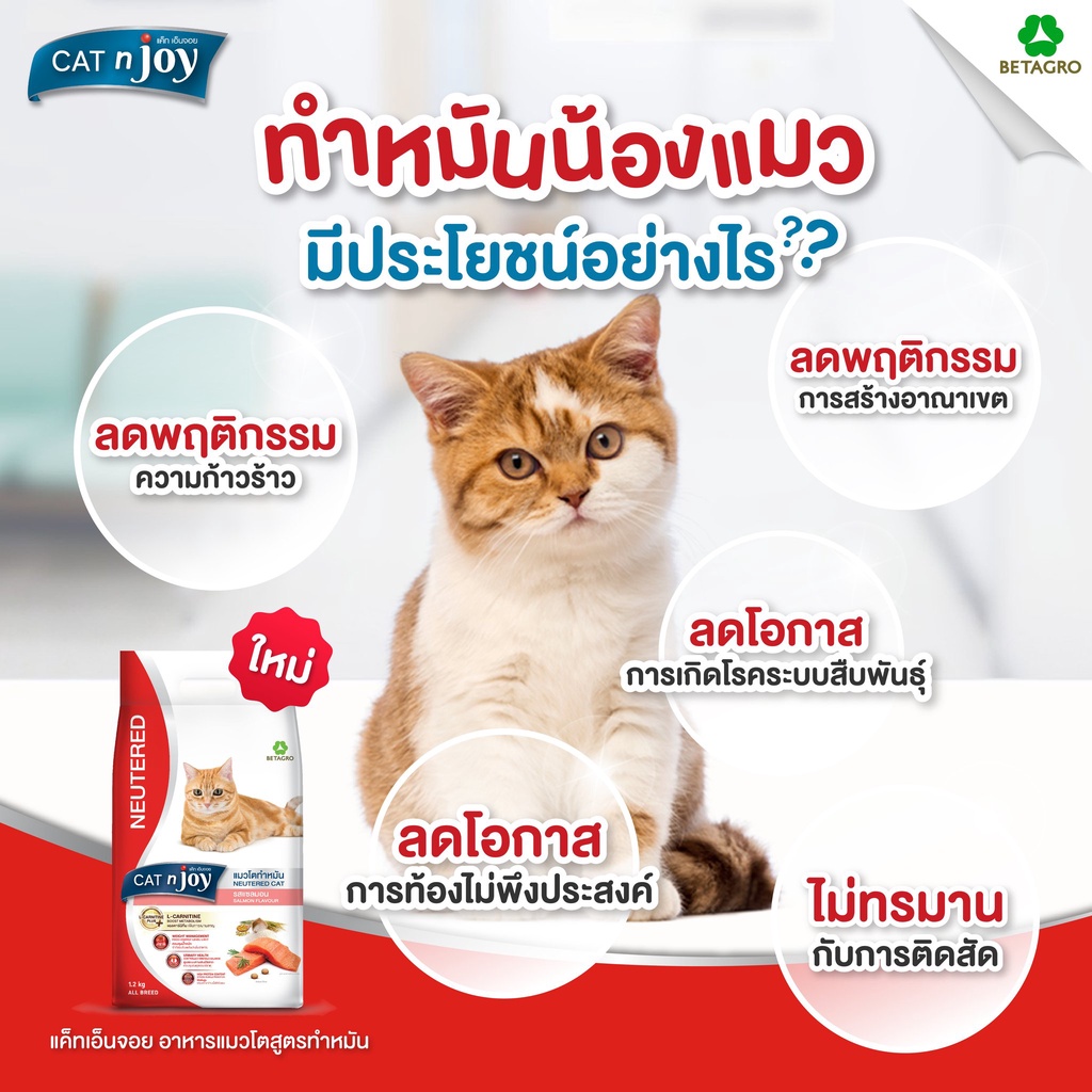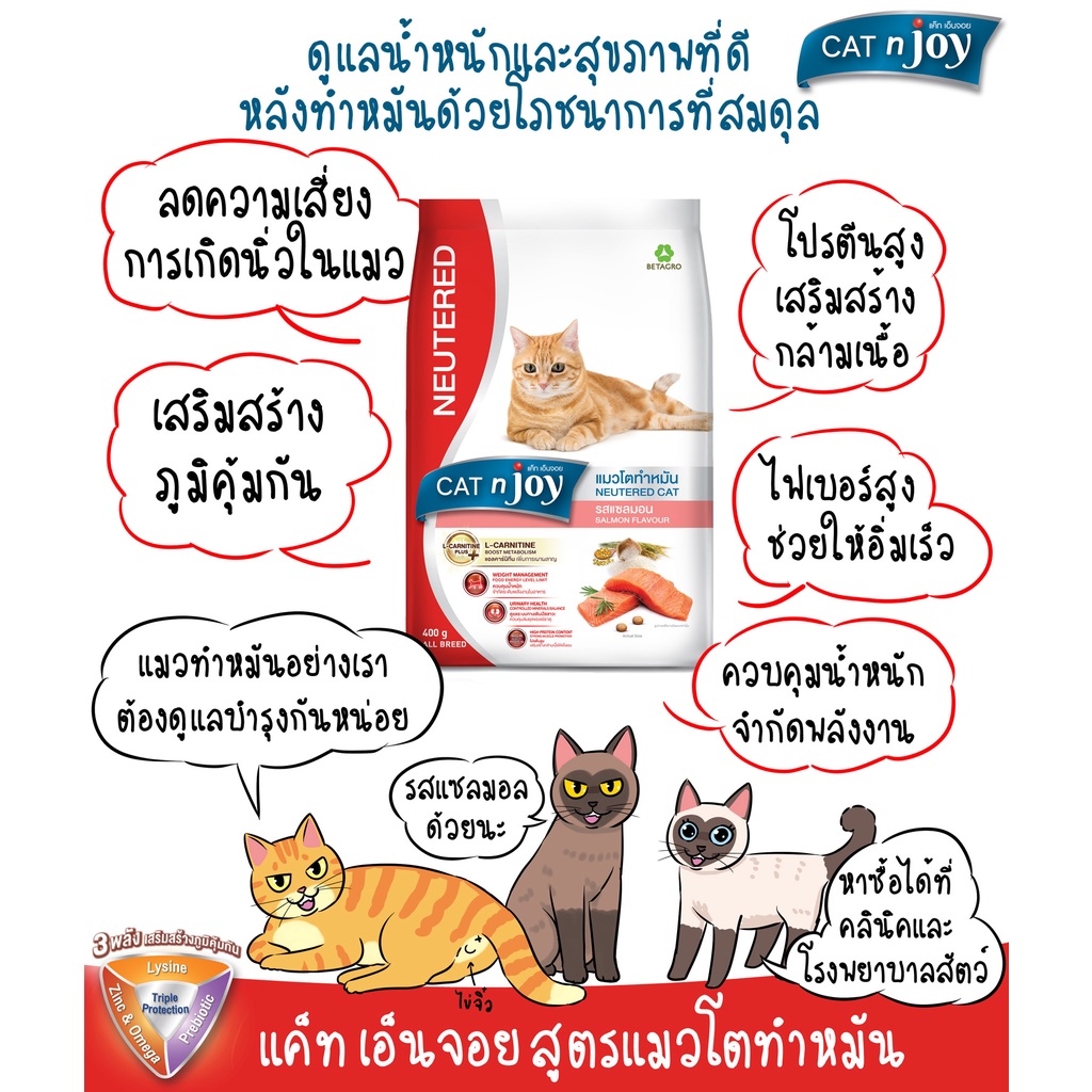 CAT n joy 400g/1.2kg อาหารแมวแมวโตสูตรทำหมัน รสแซลมอน