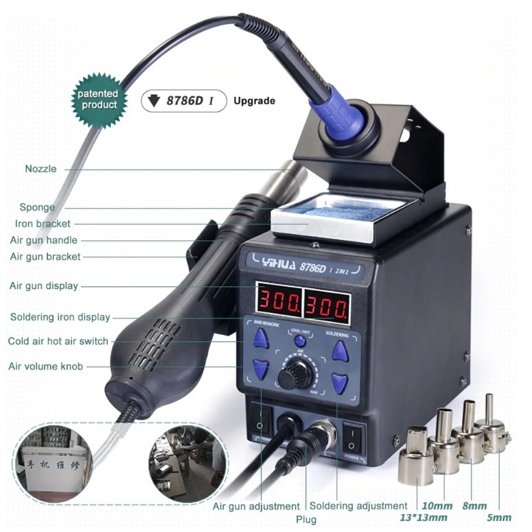ชุดเครื่องมือช่าง + เครื่องเป่าลมร้อน + หัวแร้ง YIHUA 8786D-I Upgraded ประกันศูนย์ไทย โฉมใหม่